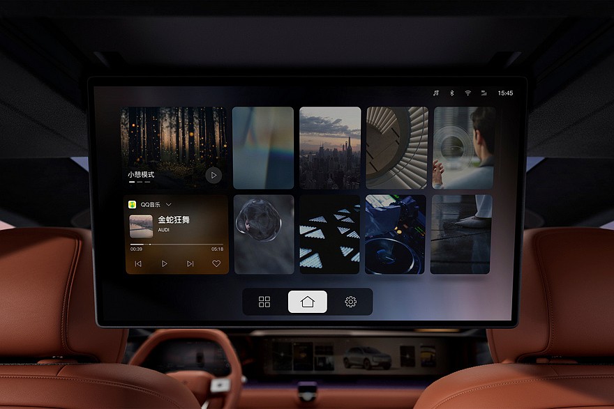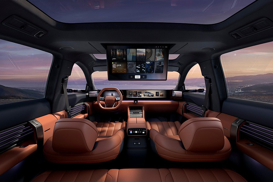 Как и снаружи, внутри кроссовер подражает универсалу AUDI E5 Sportback. В салоне E7X установлено табло во всю ширину передней панели. По бокам от него имеются дополнительные экраны, ведь для паркетника тоже предусмотрены камеры вместо традиционных наружных зеркал. Свой планшет есть и у задних пассажиров – он выдвигается из потолка, причем можно просто отдать голосовую команду. Мультимедиа – на базе искусственного интеллекта.