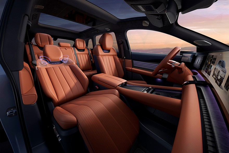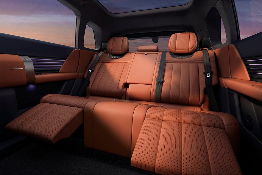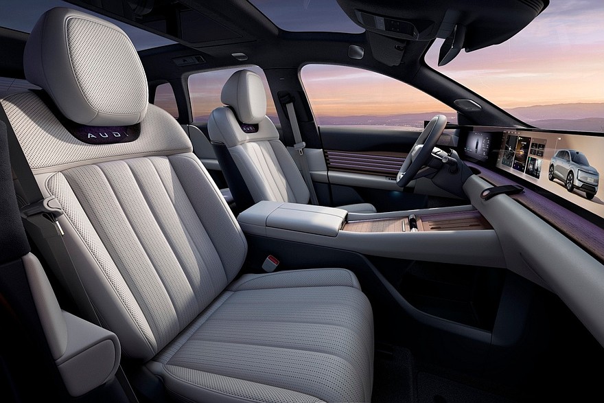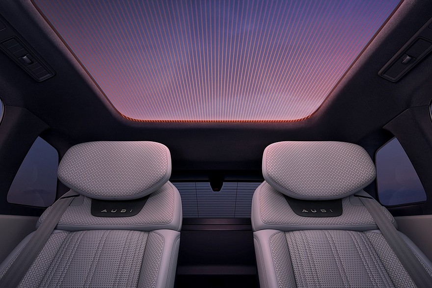 Кроссовер AUDI E7X будет доступен в пяти- или четырехместном исполнениях. Во втором случае задние сиденья разделяет массивная «тумба» с пультом. В обеих модификациях задние кресла имеют откидные подставки для ног. Разумеется, есть подогрев, вентиляция и массажер. В списке оборудования еще заявлены аудиосистема Bose с 26 динамиками (включая динамики в спинках передних кресел на уровне плеч и в подголовниках задних сидений) и меняющая степень прозрачности панорамная крыша. Наконец, в отделке интерьера применяются премиальные материалы – в частности, есть вставки из натурального дерева.