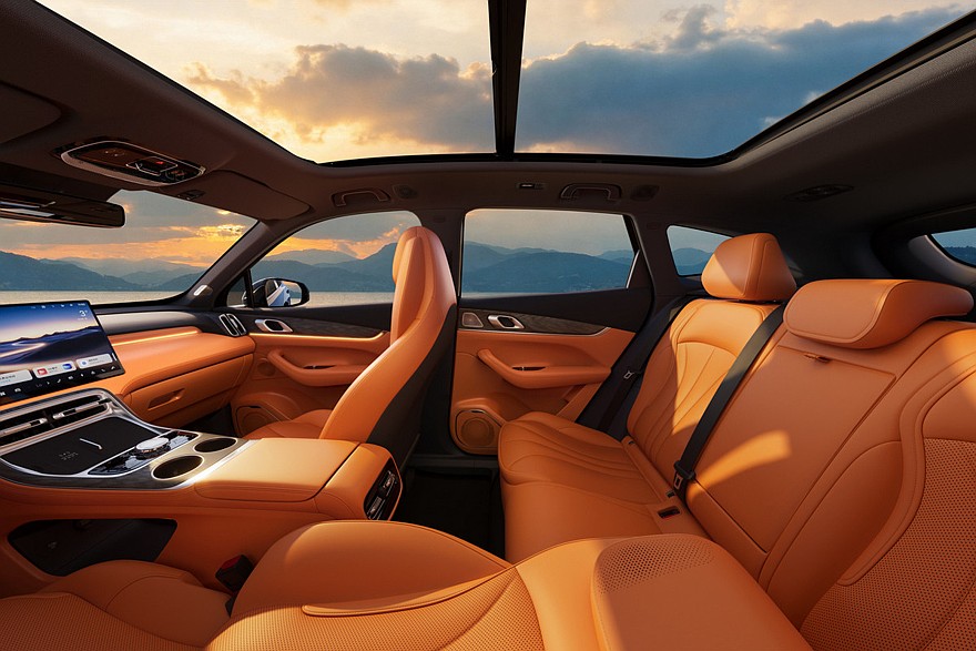 В списке оборудования самого дешевого кроссовера значатся: панорамный люк, упомянутые выше экраны, беспроводная зарядка, климат-контроль, видеорегистратор и комплекс водительских ассистентов (включает камеры кругового обзора, три радара миллиметрового диапазона, 12 ультразвуковых радаров, адаптивный «круиз» и т.д.). В следующей комплектации появляются подогрев и вентиляция передних кресел, проекционный дисплей. Топовый паркетник – это еще массажер передних сидений. Кроме того, на старте продаж во всех версиях Galaxy M7 имеет адаптивную подвеску, а первые владельцы самой дорогой версии вдобавок получат аудиосистему с 23 динамиками (включая динамики в подголовниках передних кресел).