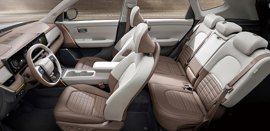 Внутри «второго» Kia Seltos установили более строгие переднюю панель и тоннель, а также новый руль в стиле других последних моделей марки. Заменили и табло, оно состоит из трех экранов: это виртуальная приборка на 12,3 дюйма, 5-дюймовый дисплей управления «климатом» и тачскрин мультимедийной системы (тоже 12,3 дюйма). Мультимедиа – с ассистентом на базе искусственного интеллекта. Если в Индии паркетник сохранил традиционный рычаг коробки, то у версии для Кореи подрулевой рычажок.