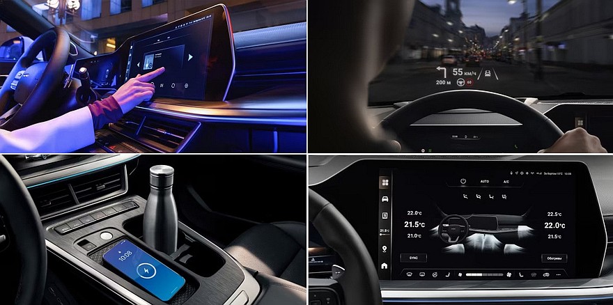 Мультимедийная система купеобразного паркетника наряду с сервисами Яндекса отныне поддерживает VK Видео. Еще добавлено дистанционное голосовое управление через Яндекс Станции (с активированными телематическими сервисами): с помощью голоса, не выходя из дома, можно запустить двигатель, включить подогрев сидений, проверить заперты ли двери (если нет, их можно заблокировать, отдав соответствующую команду). На центральном тоннеле появилась кнопка электронного стояночного тормоза. Мощность беспроводной зарядки для смартфона увеличена до 50 Вт, плюс добавлена система охлаждения.
