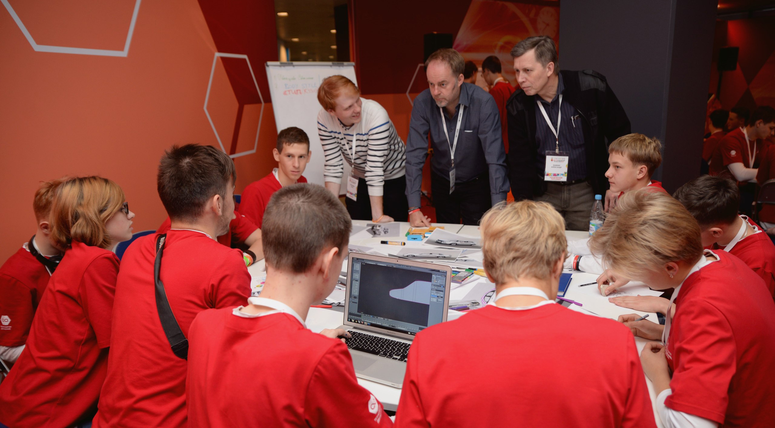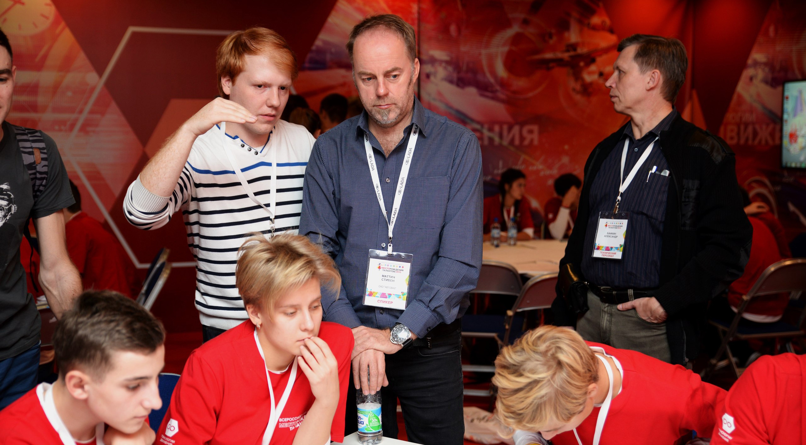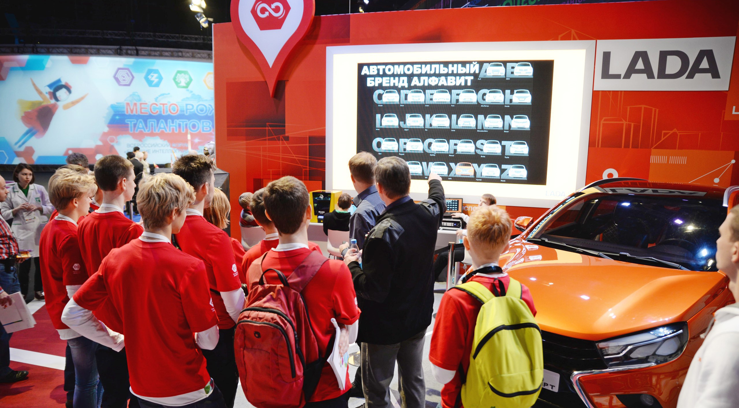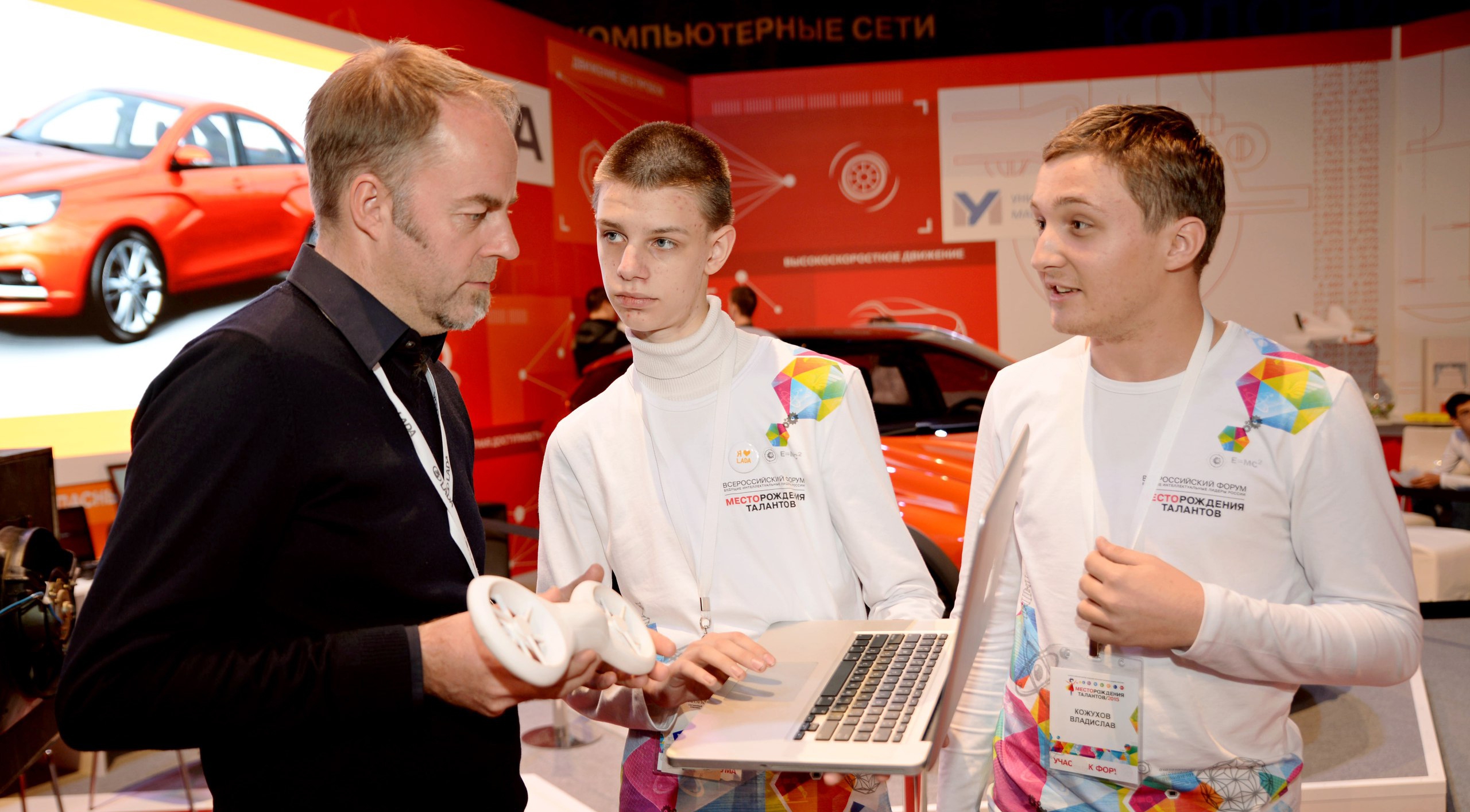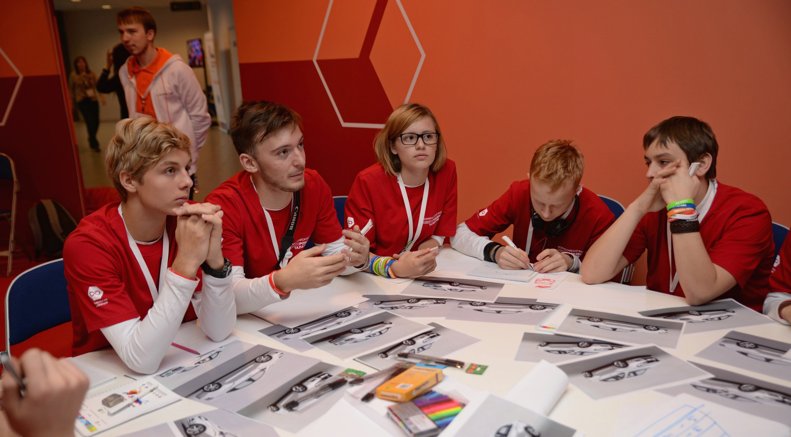 Передвижение участников и организаторов форума "Будущие интеллектуальные лидеры России" обеспечивают 20 автомобилей Lada Vesta. Компания организовала площадку, где в лаборатории "Технологии движения" лекции юным интеллектуалам читает создатель нового дизайна автомобилей Lada Стив Маттин, который дал ребятам интересное задание.