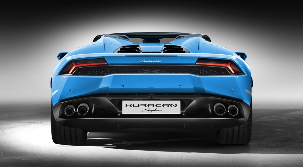 В целом Huracan Spyder сохранил узнаваемый дизайн купе, обзаведясь крышей, способной скрыться за обтекателем в течение 17 секунд на скоростях до 50 километров в час. Управление мягким верхом осуществляется с помощью дополнительной клавиши, размещённой на центральном тоннеле, при этом покупатели смогут выбрать чёрный, коричневый или красный цвет "верхушки".