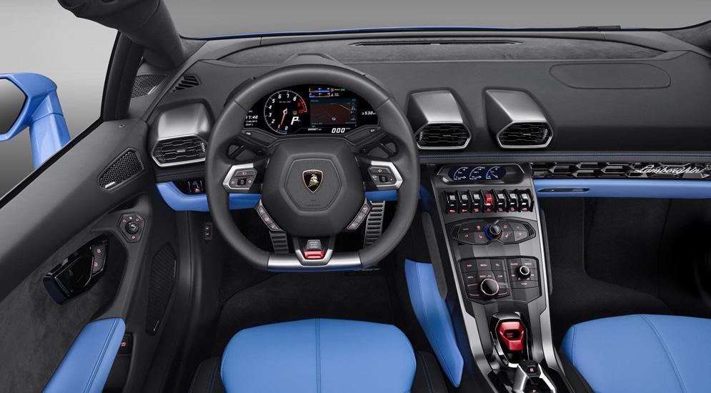 Lamborghini Huracan Spyder в среднем "кушает" 12,3 литра на сто километров пробега. Такого результата удалось достичь благодаря применению систем старт/стоп и отключению "лишних" цилиндров при езде "в пол педали".
