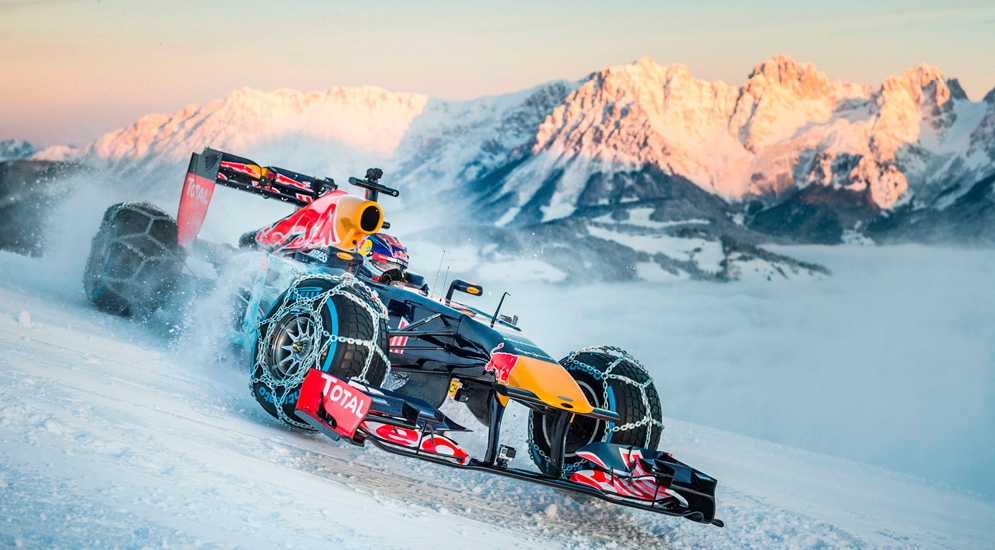 Более того, вид болида Формулы-1, штурмующего горнолыжную трассу на высоте 1 600 метров над уровнем моря по снегу, зрелище крайне редкое и по-настоящему уникальное.