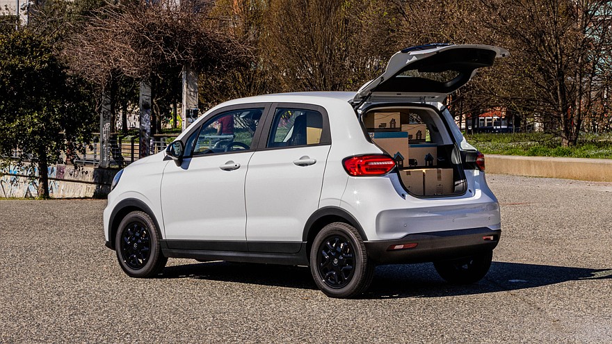 Габаритная длина фургончика равна 3620 мм, ширина – 1652 мм, высота – 1577 мм, расстояние между осями – 2400 мм. Объём получившегося в результате доработки грузового отсека составляет 657 литров, а грузоподъёмность этой пятидверки составляет 220 кг (подойдёт для доставки небольших посылок по городу). Модели достались 15-дюймовые стальные колёсные диски чёрного цвета и комплект водительских ассистентов ADAS.