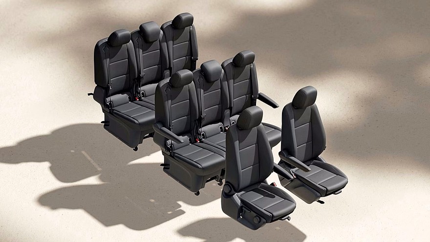 В салоне Mercedes-Benz VLE может быть 6,7 либо 8 мест, доступны несколько вариантов кресел разного уровня комфортности. Часть кресел можно демонтировать и оставить в гараже, для удобства их перемещения предусмотрены колёсики. По салону кресла перемещаются с помощью электроприводов, причём управлять ими можно дистанционно через специальное приложение на смартфоне. Объём багажника в зависимости от числа и расположения сидений варьируется в диапазоне от 795 до 4078 л. Стекло багажной двери можно открывать независимо от самой двери.
