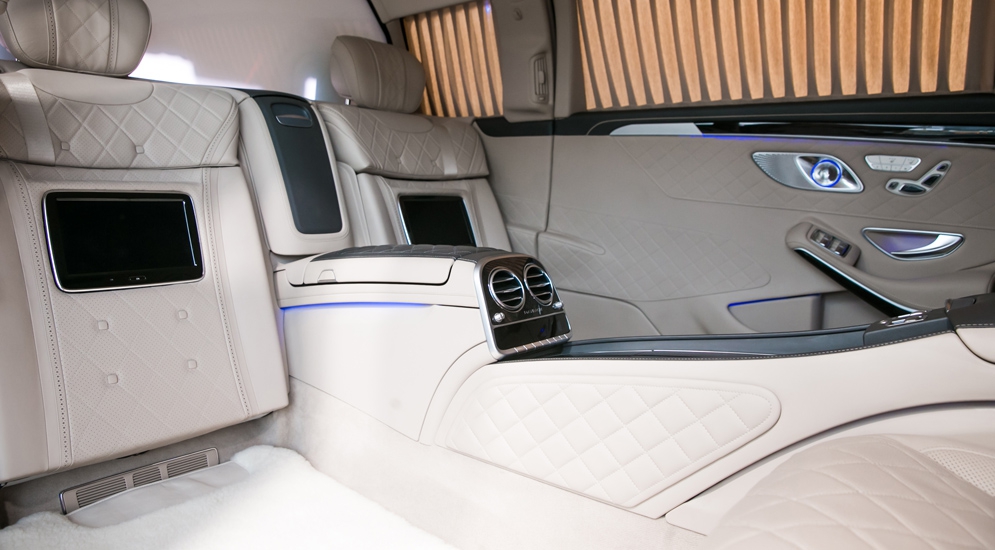 Главным достоинством автомобиля является салон. В задней части установлены четыре раздельных кресла таким образом, чтобы пассажиры могли сидеть лицом друг к другу. Сидения разделены центральным тоннелем, где расположены воздуховоды и клавиши для управления различными системами. Кресла отделаны кожей, между водительским и пассажирским отсеками есть специальная перегородка с 18,5-дюймовым дисплеем, также автомобиль оснащён аудиосистемой Burmester.