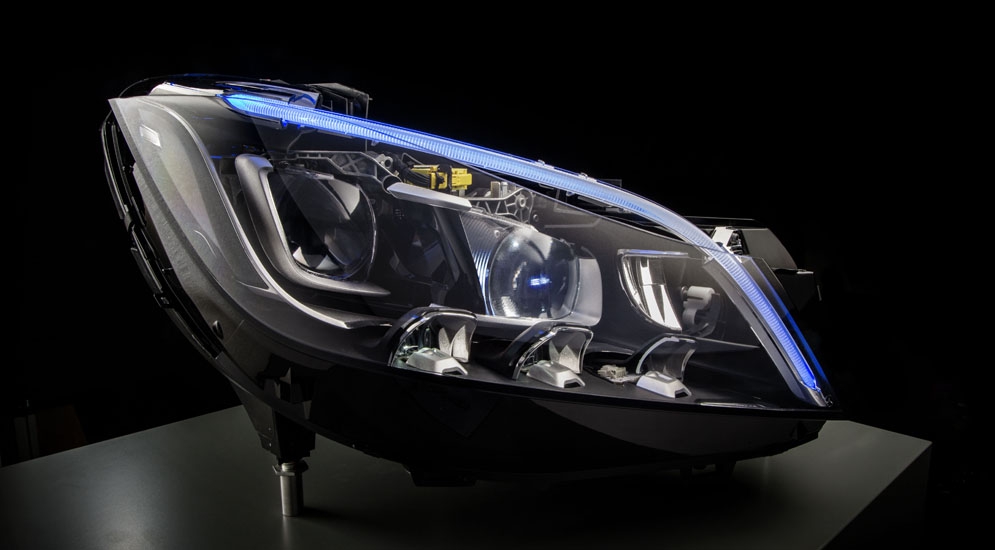 Летом 2014 года компания Mercedes-Benz представила новый CLS-класс с "умными" светодиодными фарами головного света. Уже в следующем году немцы покажут новое поколение оптики. Если сейчас для CLS-Class доступны фары с 24 независимыми светодиодами, то в будущем их количество возрастет до 84. Дальность освещения увеличится с 485 до 600 метров.