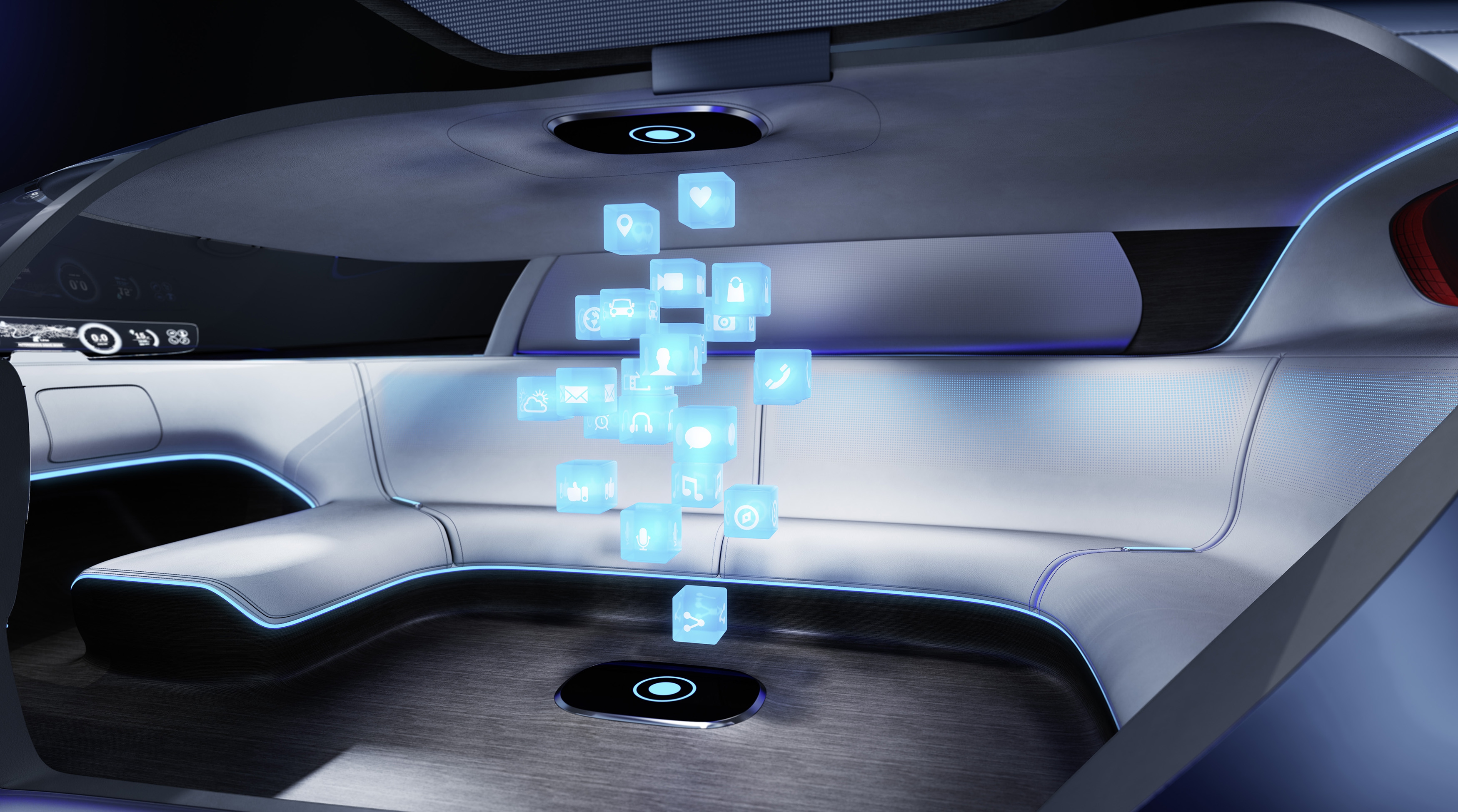 Если к экранам по периметру салона нас уже практически приучили, то вот к футуристичным голограммам пока ещё нет. В Mercedes-Benz Vision Tokyo в центре салона, выполненного в стиле "клубный лаунж", мы видим трёхмерные иконки приложений, загруженных в мультимедийную систему.