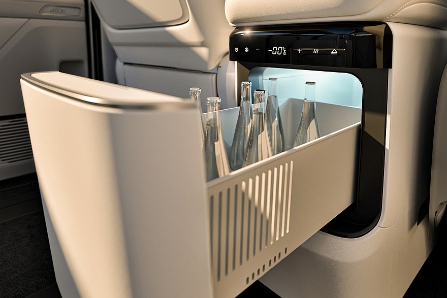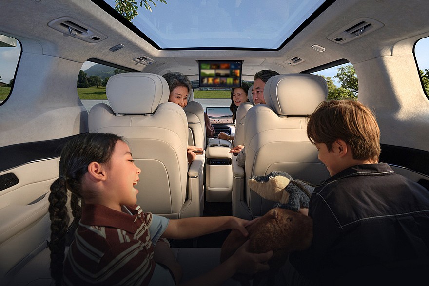 В списке оборудования начального варианта значатся: упомянутые выше экраны, подогрев и вентиляция передних сидений, беспроводная зарядка для смартфона мощностью 50 Вт, трехзонный климат-контроль. Кроме того, даже у базового минивэна есть автопилот – этот комплекс включает лидар над лобовым стеклом, несколько радаров и множество датчиков. Начиная со следующей по старшинству комплектации появляются пневмоподвеска, панорамная крыша, проекционный дисплей, вторая площадка для беспроводной зарядки, подогрев, вентиляция и массажер кресел первого и второго рядов, встроенный в торец тоннеля выдвижной бокс с функциями подогрева и охлаждения, экран для задних седоков (крепится к потолку). Топовый минивэн – это также обивка из кожи Nappa, подогрев и вентиляция сидений третьего ряда.