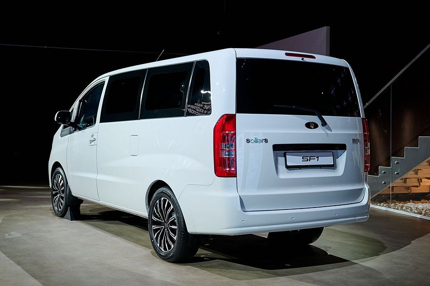 Минивэн Sollers SF1 сертифицирован по категории М1, конфигурация салона – 2+2+3, он рассчитан на водителя и шестерых пассажиров. Второй ряд представляет собой раздельные кресла с продольной регулировкой, а третий – диван, спинки сидений которого складываются в пропорции 50/50, что позволяет при необходимости увеличивать объём грузового пространства. У этого автомобиля габаритная длина равна 5115 мм, высота – 1900 мм (подходит для движения в плотном городском трафике и для использования подземных паркингов).