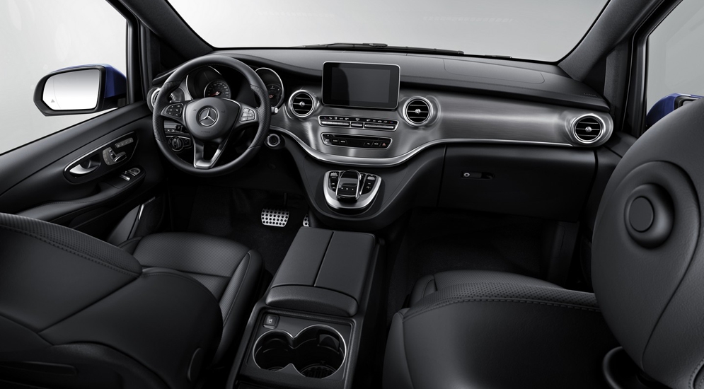 В новой роскошной версии немецкий минивэн оснащен спортивной подвеской, панорамным люком (как утверждает производитель – самым большим в классе), который автоматически закроется, если пойдет дождь, и 19-дюймовыми легкосплавными дисками оригинального дизайна. В салоне Mercedes-Benz V-Class Exclusive установлена другая панель приборов, а в отделке применяются кожа Nappa и полированный алюминий.