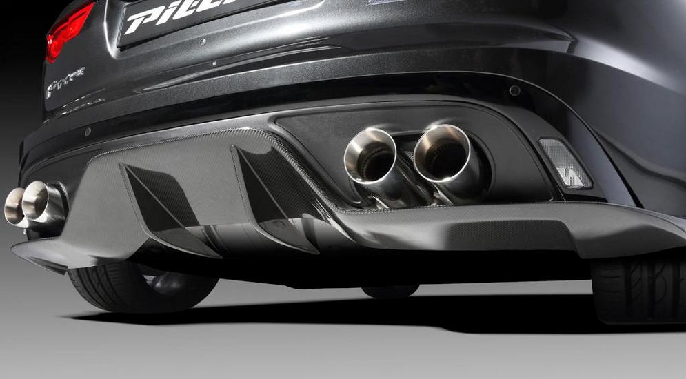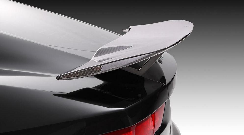 Для купе применены классические способы доработки – не изменить, а подчеркнуть агрессивность дизайна модели, которая полюбилась большинству автомобильных фанатов. Этой цели служит набор из уникальных карбоновых элементов по нижнему периметру кузова: губа переднего бампера, боковые юбки и задний диффузор. Также из композита выполнено новое заднее антикрыло, которое вкупе с 90-миллиметровой «четырёхстволкой» глушителя добавляют «спорта» корме.
