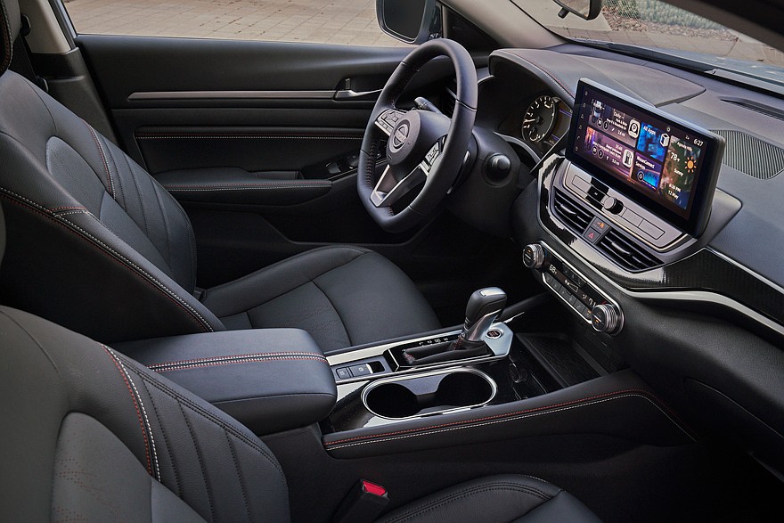 Версия SR в 2026 модельном году по умолчанию имеет крупный тачскрин мультимедиа (те же 12,3 дюйма) и беспроводную зарядку для телефона (прежде это были опции). Как и раньше, в списке оборудования этого исполнения еще есть спортивная подвеска, 19-дюймовые диски и спортивные кресла. За доплату предусмотрен пакет Premium: панорамная крыша, «кожа», подогрев руля и передних сидений, аудиосистема Bose с 9 динамиками, камеры кругового обзора. Наконец, для Altima SR-2026 можно выбрать новый пакет Midnight Edition, он включает выполненные в черном цвете V-образную вставку на радиаторной решетке, 19-дюймовые колеса и крышу, а также затемненные окантовку стекол и эмблемы.