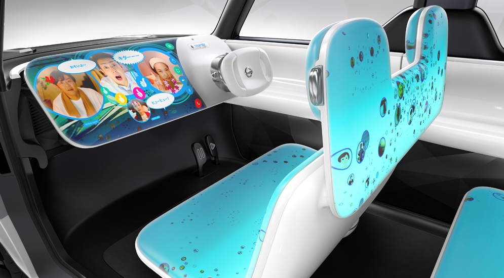 К сожалению, инженеры Nissan пока не нашли способа реализовать такие мультимедийные экраны на практике, поэтому значительная часть информации просто проецируется на различные поверхности в салоне концепта. Информации о характеристиках электромотора и запасе хода также пока нет.