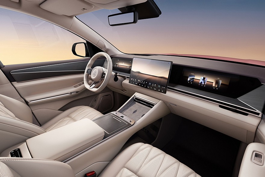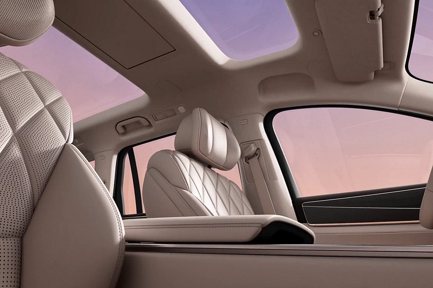 Среди особенностей внешности свежего SUV – расположенная под капотом изогнутая светодиодная полоска практически во всю ширину передка, вертикальные блоки фар, которые состоят из нескольких диодных же квадратных секций и примкнувших к ним светящихся полосок, выкидные ручки дверей и сделанные в виде единой плашки задние фонари. Для кроссовера также заявлены продвинутый автопилот с лидаром и пневмоподвеска.