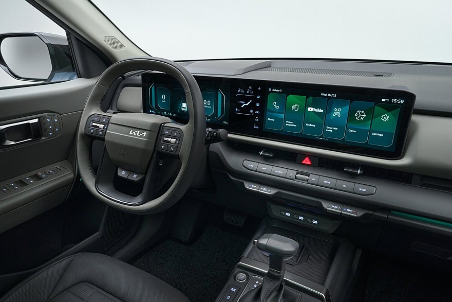 В салоне – более строгая по сравнению с Селтосом первой генерации передняя панель и руль в стиле других последних моделей марки. «Второй» паркетник также обрел новое табло, которое состоит из трех экранов: это виртуальная приборка на 12,3 дюйма, 5-дюймовый дисплей управления «климатом» и тачскрин мультимедийной системы диагональю 12,3 дюйма. Мультимедиа – с ассистентом на базе искусственного интеллекта. Под центральным дисплеем расположены физические кнопки. Как и в Индии, в Европе базовый кроссовер имеет привычный рычаг коробки, в Корее же у модели подрулевой рычажок.
