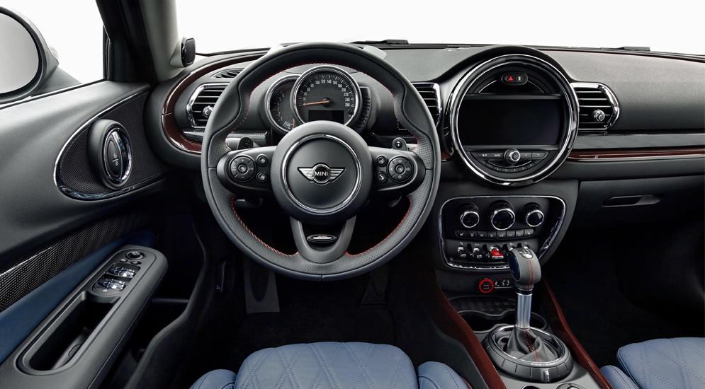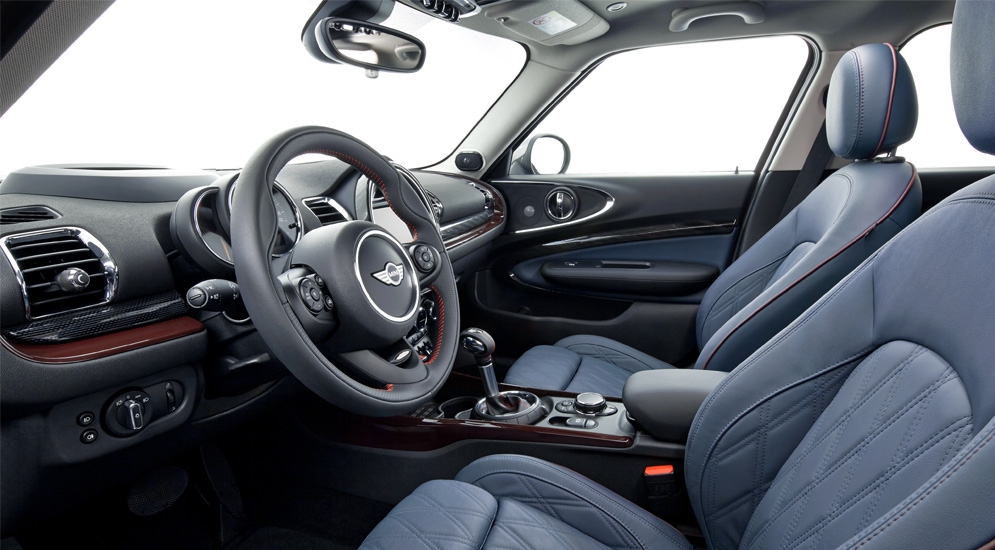 Базовая комплектация очередного поколения Mini Clubman включает бортовой компьютер, пакет улучшения обзорности и датчик дождя, подогрев передних сидений, форсунок омывателей и зеркал заднего вида, передний подлокотник, спортивное кожаное рулевое колесо.