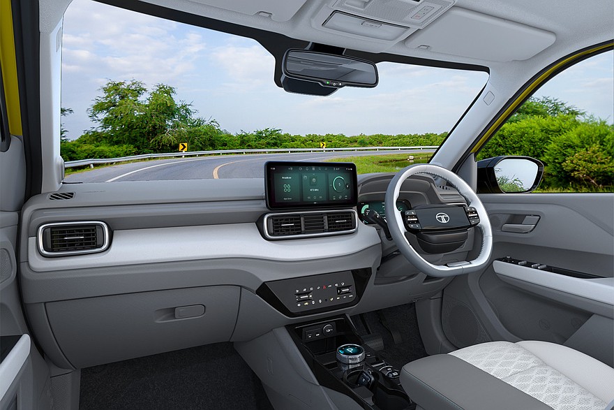Как и прежде, от бензинового Punch электрокросс отличается оформлением передней части: у него собственные, более узкие диодные ДХО и оригинальный бампер. После рестайлинга Tata Punch EV лишился объединяющих основные фары черных вставок и «прорези». Убрали и дополнительную светящуюся полоску между ходовыми огнями, вместо нее отныне черная плашка. Еще заменили задний бампер и фонари – они такие же, как у свежей топливной модели. Электрокару также достались 16-дюймовые колеса нового дизайна (но в базе идут 15-дюймовые). Наконец, была пересмотрена палитра цветов кузова.