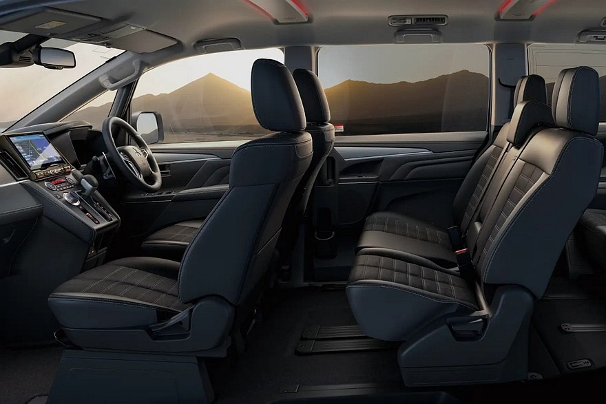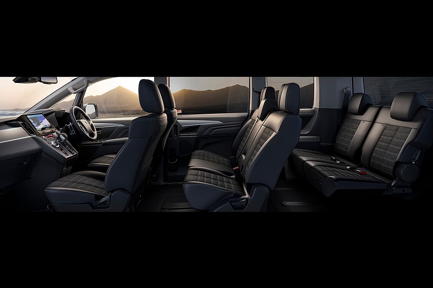 В салоне установили 8-дюймовую виртуальную приборку, она идет уже в базе. На передней панели и дверях появились темно-серые вставки вместо «деревянных». Кресла могут быть обиты похожим на замшу водоотталкивающим материалом, при этом предусмотрена и обивка из натуральной кожи. В нижней части центральной консоли появились USB-разъемы Type-C. За мультимедиа традиционно для Японии нужно доплачивать. Как и раньше, Mitsubishi Delica D:5 бывает в семи- или восьмиместном исполнениях.