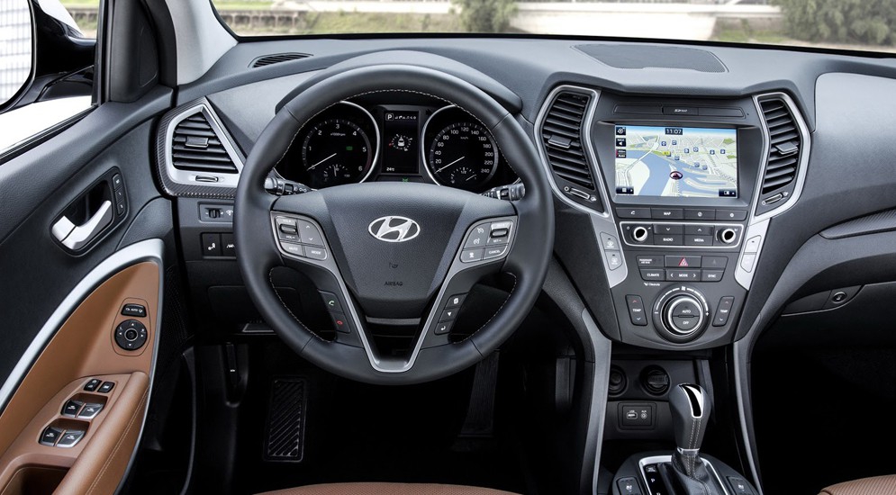Версия Dynamic идёт только с автоматической КП и стоит от 1 984 000 рублей за автомобиль с бензиновым двигателем и от 2 104 000 рублей с дизельным. Такой Santa Fe оснащается сиденьями с электрорегулировками в 12 направлениях, ксеноновыми фарами с омывателями, светодиодными фонарями, подсветкой порогов, системой слежения за "мёртвыми" зонами, цветным дисплеем на приборной панели, а также бесключевым доступом в салон.