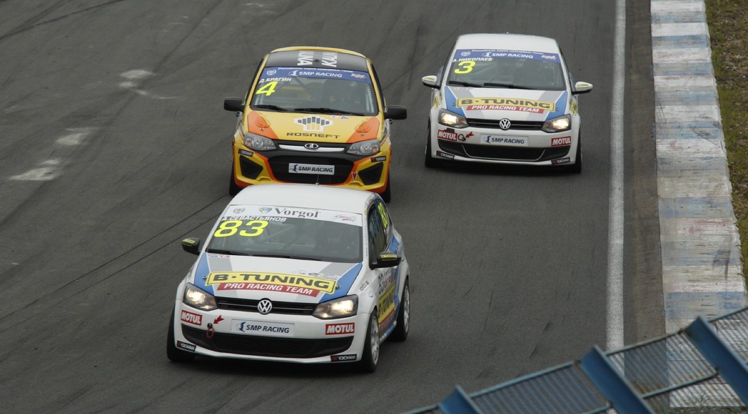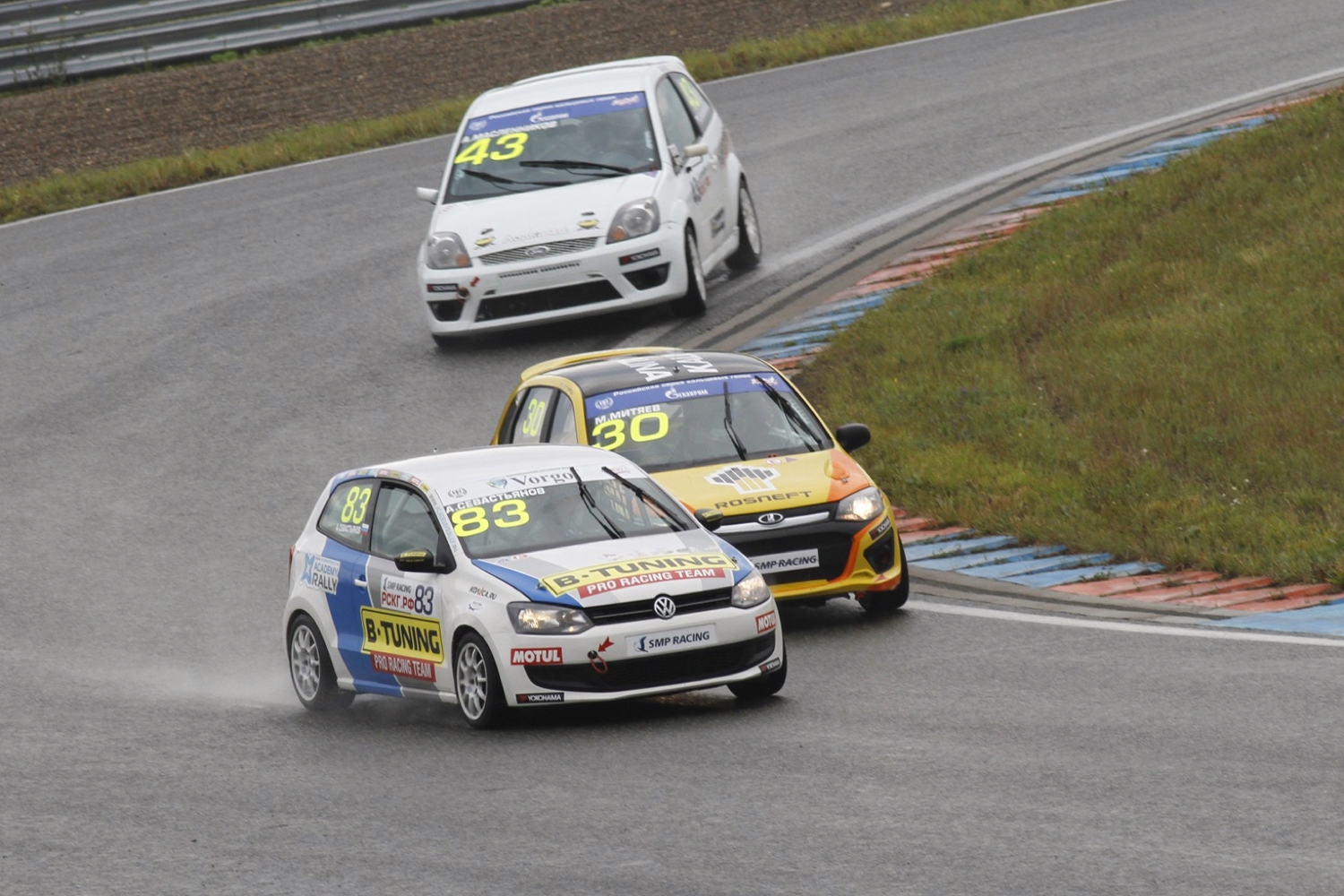 Не обошлось без погодных сюрпризов: трасса не успела просохнуть от закончившегося накануне сильного ливня. Третья стартовая позиция была у Севастьянова, на первых двух – Калина Дмитрия Брагина и Рио Андрея Радошнова. Последний в ходе гонки уступил своё место Polo команды B-Tuning, но вскоре Михаил Митяев на Lada Kalina сумел отыграть себе второе место. Финишную черту с минимальным отрывом друг от друга пересекли Брагин, Митяев и Севастьянов. Последний по решению КСК из-за нарушения границ трассы переместился на восьмую строчку – к его времени было добавлено 20 штрафных секунд.