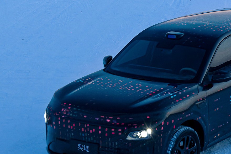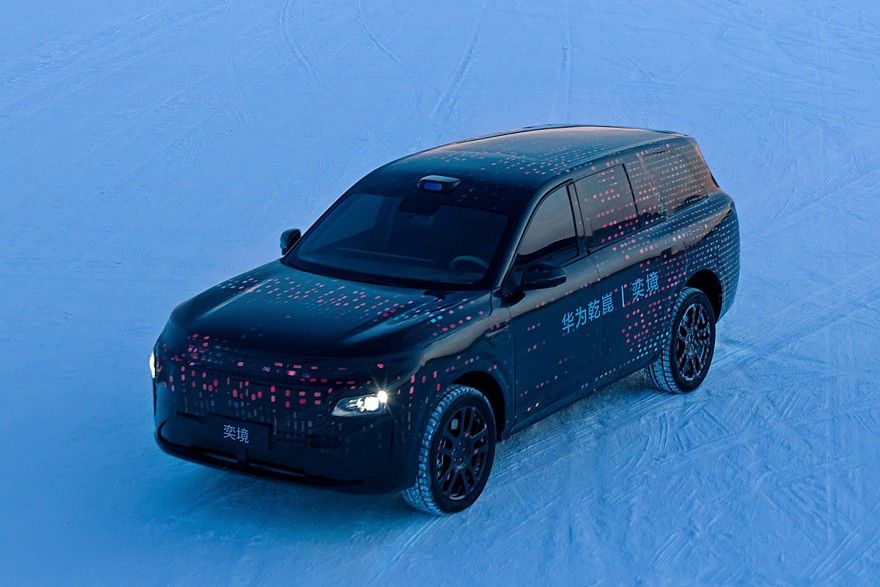 Кроссовер обклеен маскировочной пленкой, но кое-какое представление о дизайне получить все-таки можно. Модели достались компактные фары, над ними наверняка проходит пиксельное табло. Задние фонари тоже, скорее всего, сделаны в виде единой плашки. Паркетник Yijing также получил скрытые ручки дверей. А над лобовым стеклом имеется лидар: конечно, автопилот – от Huawei, как и остальная электроника. Размеры марка не озвучила.