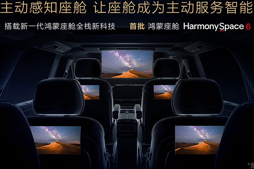 Шестиместный интерьер засвечен лишь мельком. Практически всю площадь передней панели занимает гигантское табло мультимедийной системы. Предусмотрен «потолочный» планшет, еще четыре экрана могут быть встроены в спинки сидений. Мультимедиа работает на новой операционке HarmonySpace 6.