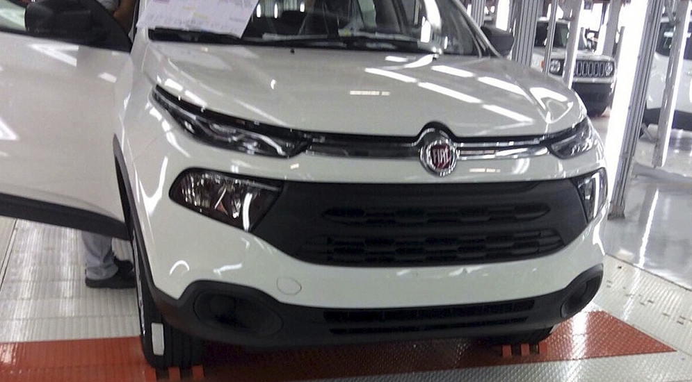 Бразильский портал Novida des Automotivas опубликовал первые "натурные" фото полноразмерного пикапа Fiat Toro, сделанные на бразильском заводе в штате Пернамбуку на востоке Бразилии. Сходу бросается в глаза нестандартный распашной задний борт, состоящий из двух створок. Механизм открывания борта спрятан за исполинским фирменным логотипом.
