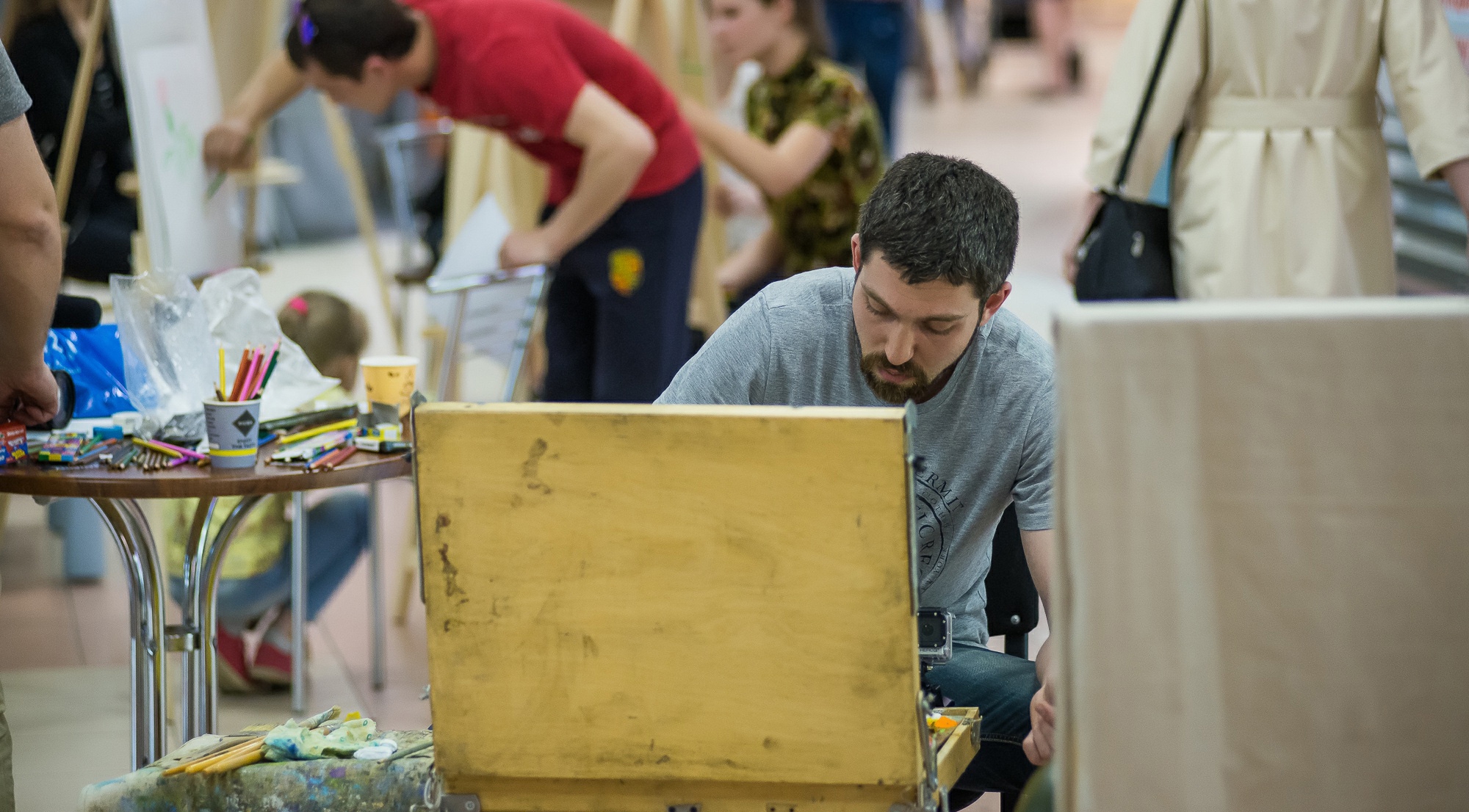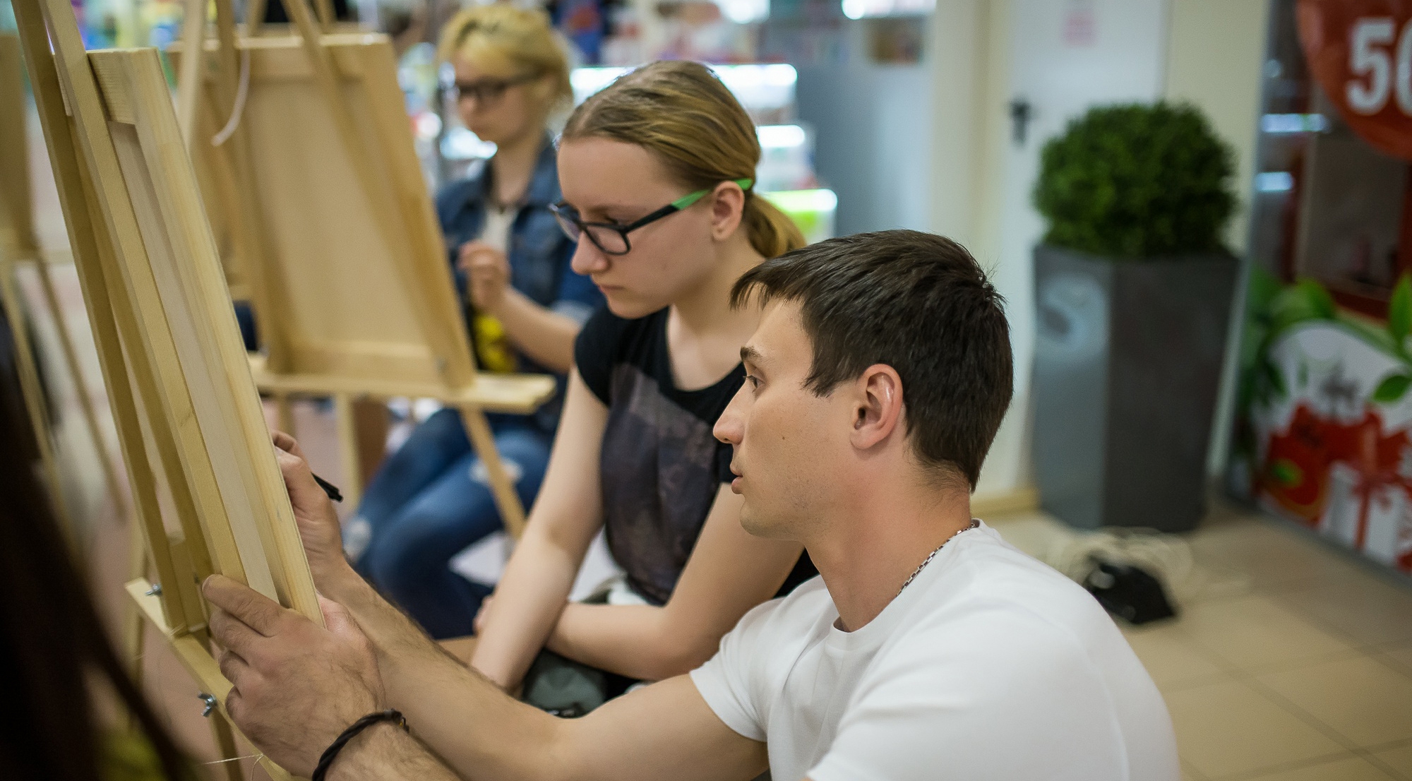 Во вторник и среду на этой неделе в пермском торговом центре "Семь пятниц" состоялись мастер-классы по рисованию от проекта "Покажи Россию". Абсолютное большинство людей целенаправленно шли именно на мастер-классы — такое у нас впервые, и мы этому очень рады. Люди стремились занять мольберты, едва они были расставлены, многие проводили за работой все три часа, отведенные на мастер-классы.
