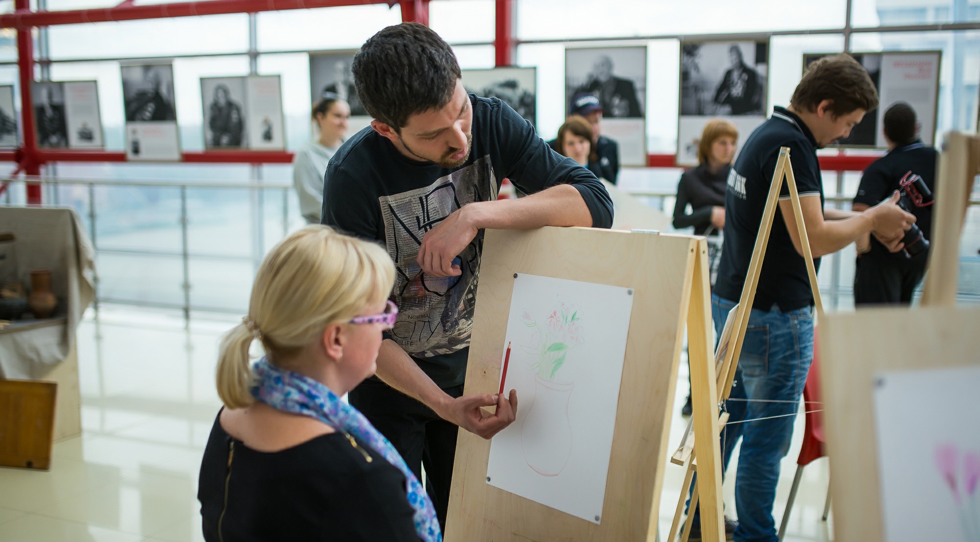 В Тольятти мастер-классы по рисованию от проекта "Покажи Россию" принимал торговый центр "Русь". Наши художники расставили ученические мольберты не в самом проходном месте центра, но к нам пришло большое количество неслучайных людей — среди тольяттинцев оказалось немало тех, кто следил за проектом с самого начала и заранее планировал прийти поучится рисованию у Армена Карапетьянца и Евгения Уткина.
