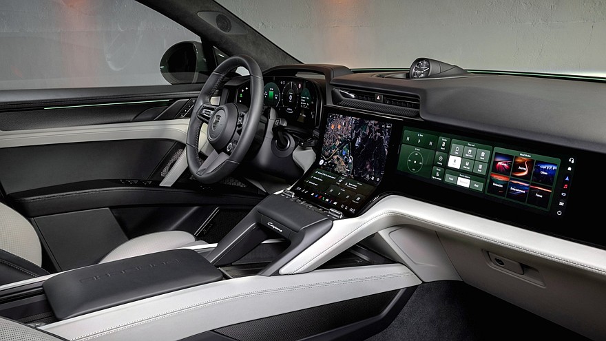 С места водителя Cayenne Coupe Electric ничем не отличается от Cayenne Electric, но пакет Sport Chrono входит в базовую комплектацию. Заднее сиденье по умолчанию двухместное, но вместо него можно выбрать диван формата 2+1 с неудобным «тёщиным местом» посередине. Запас пространства по высоте у купеобразной версии поменьше, чем у Cayenne Electric, а подушки задних сидений не регулируются в продольном направлении, можно лишь менять наклон спинок. Объём переднего багажника такой же, как у Cayenne Electric, — 90 л, а вот основной задний багажник из-за изменённой формы кормы уменьшен с 781 до 534 л (у Cayenne Turbo Coupe Electric — c 747 до 500 л).