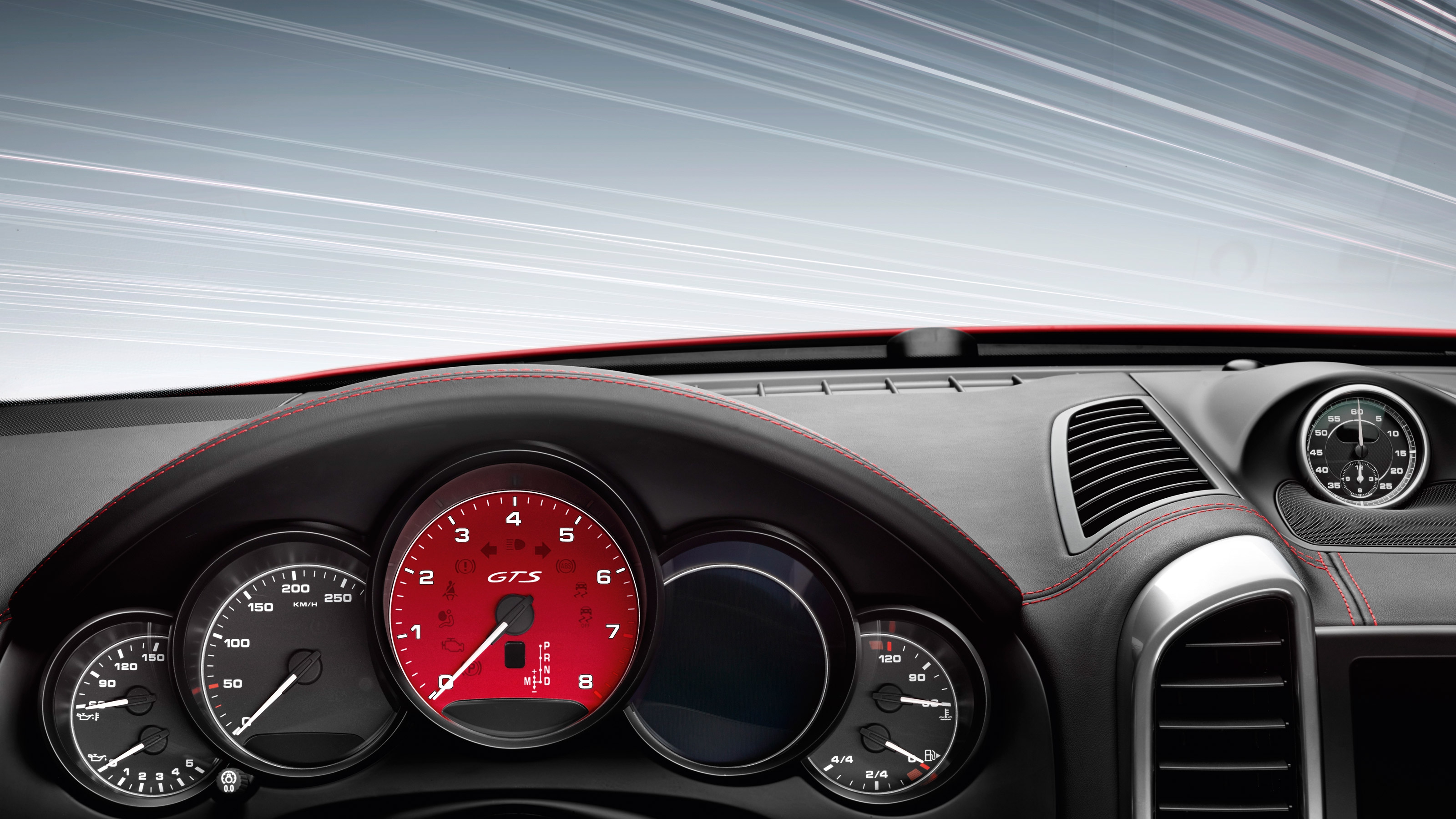 Новое оформление получил тахометр с надписью GTS. Информационно-развлекательная система располагает сенсорным дисплеем диагональю 4,8 дюйма. В стандартную комплектацию входят спортивные сиденья с восьмипозиционной регулировкой. Матовый алюминий и алькантара также являются элементом базовой комплектации нового Porsche Cayenne GTS.