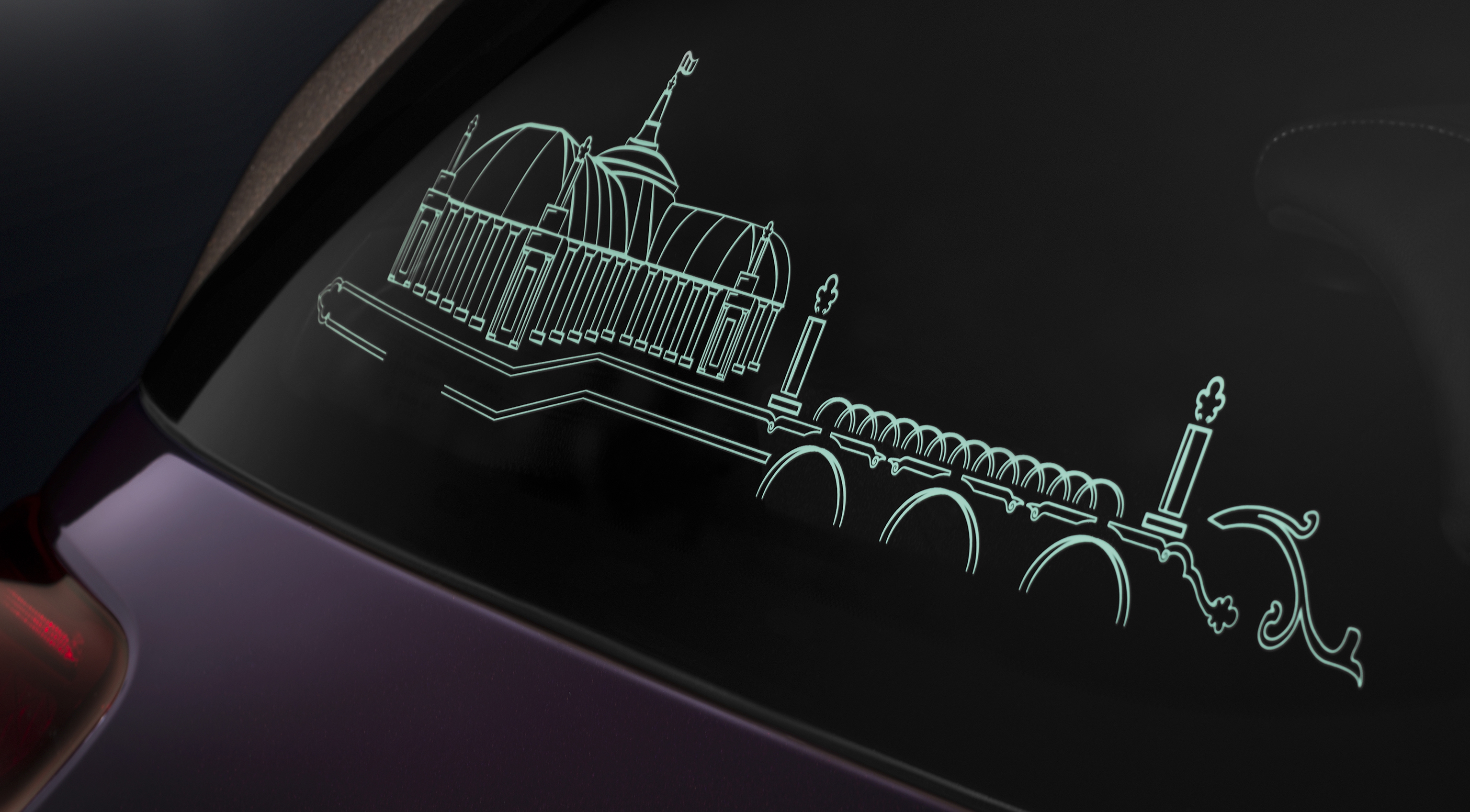 На окна наносится рисунок методом шелкографии, который вторит картинке на приборной панели.