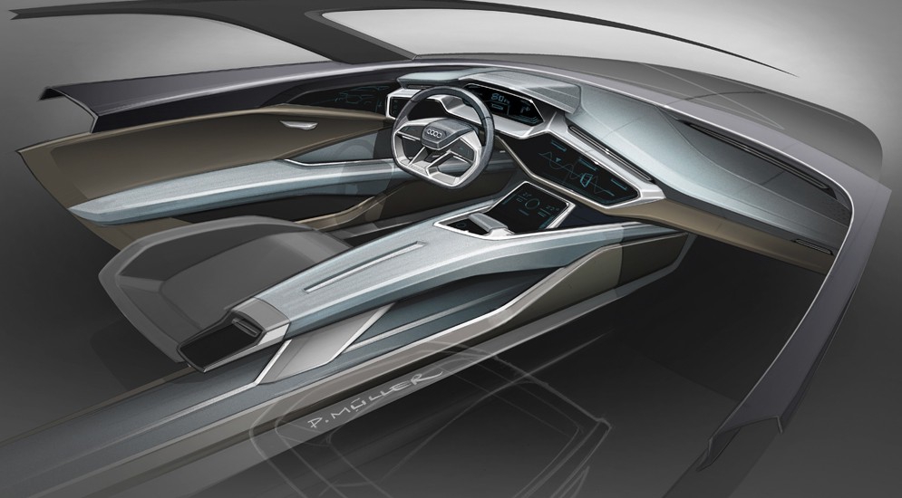 Напомним также, что Audi e-tron quattro получит футуристичный интерьер, лишённый привычных кнопок – всё управление системами автомобиля осуществляется посредством сенсорных OLED-дисплеев. Кроме того, на прототипе будет продемонстрирован инновационный матричный головной свет на органических светодиодах.