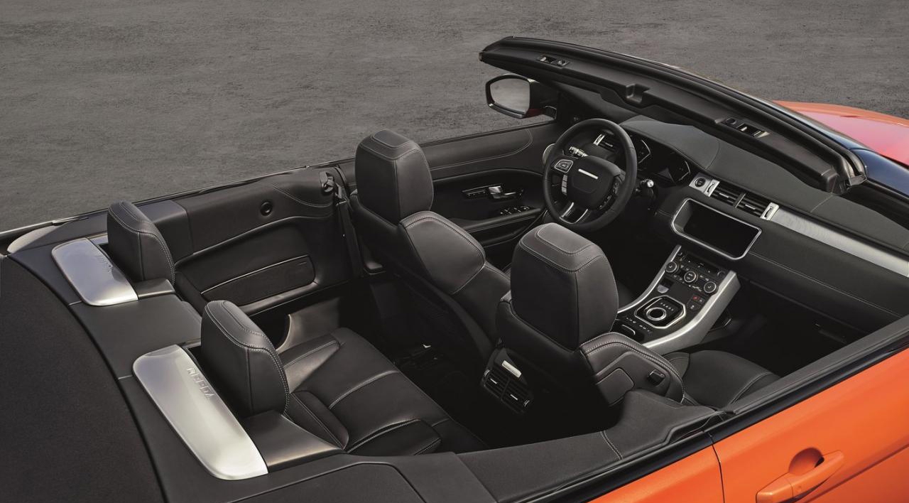 Как сообщает компания Land Rover, Evoque Convertible получил самую длинную и широкую складную крышу среди всех серийных кабриолетов. Для того, чтобы поднять мягкий верх потребуется 18 секунд, чтобы сложить – 21 секунда. Скорость движения при этом не должна превышать 48 км/ч. Объём багажного отсека составляет 251 литр и не зависит от положения крыши.