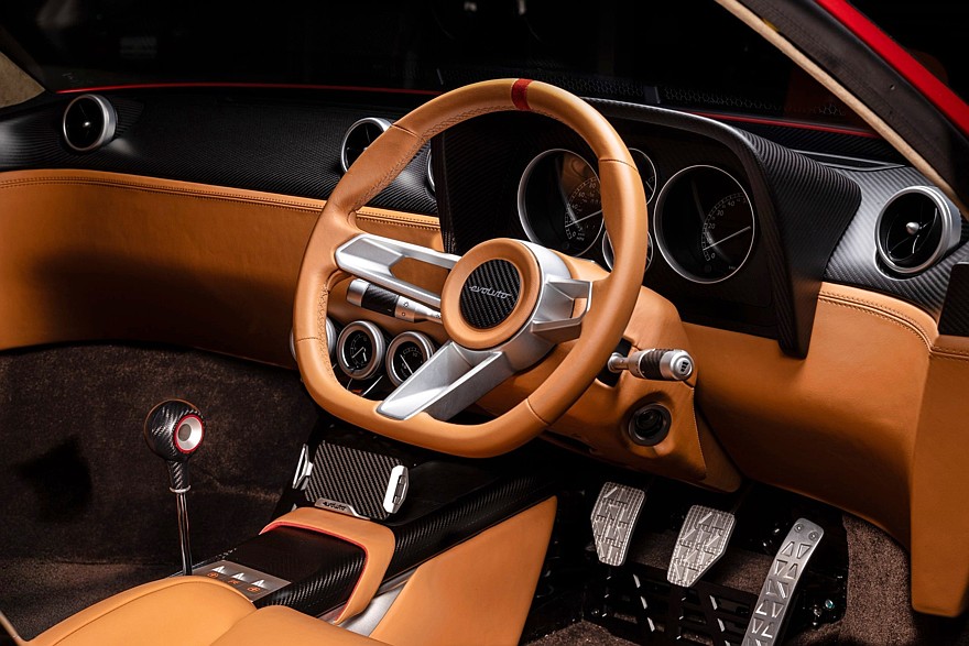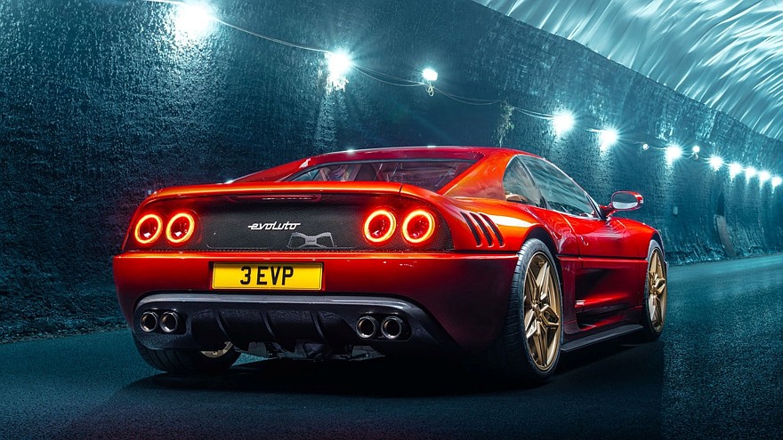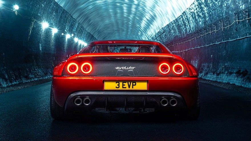 Для изготовления каждого 355 by Evoluto нужен хорошо сохранившийся донорский Ferrari F355 GTS, от которого в ход пойдут только остов кузова и 3,5-литровый атмосферный двигатель V8. Силовой каркас тщательно реставрируется и получает усилители из стали и углепластика, жёсткость на кручение в результате увеличивается на 23%. Все наружные панели новые, углепластиковые, при этом сохранены ключевые стилистические особенности исходного итальянского спорткара, в том числе поднимающиеся фары. Стоковая проводка на 90% заменена новой, более компактной и лёгкой. Система микроклимата модернизирована.