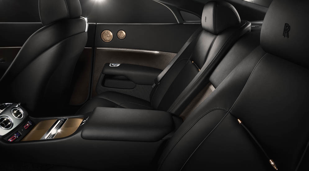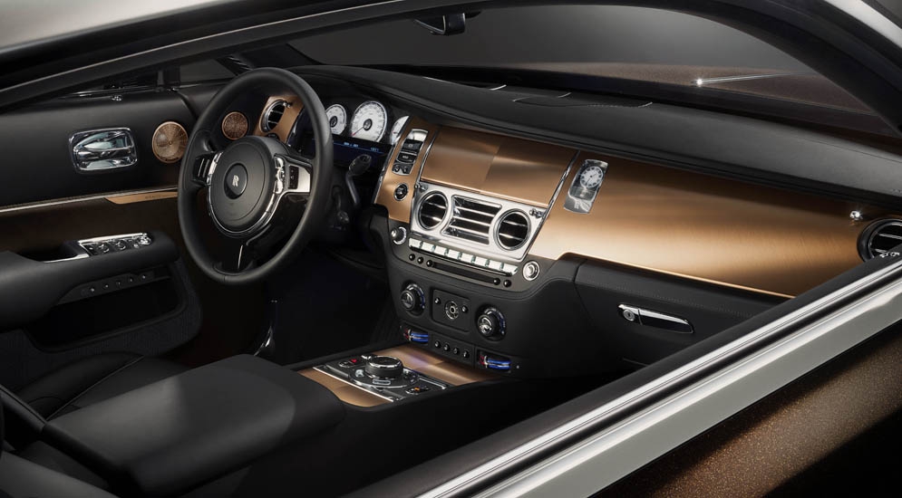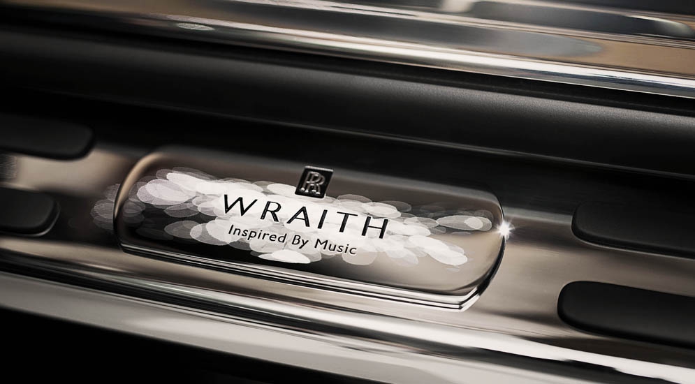 Wraith Inspired by Music покрыт эксклюзивной краской с поэтическим названием "Лирическая бронза". В салоне: решётки динамики, вставки на дверях и таблички с выгравированными надписями также отделаны под "бронзу".