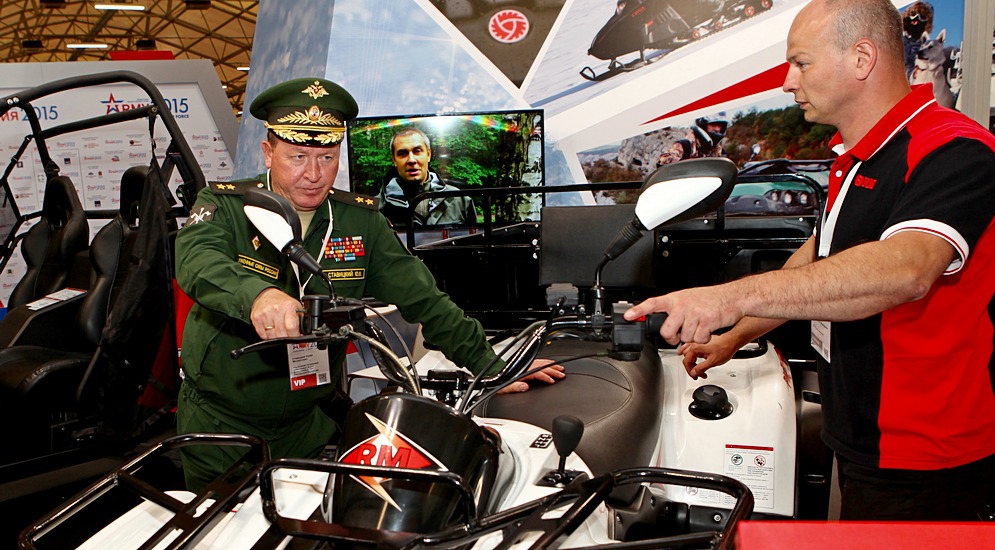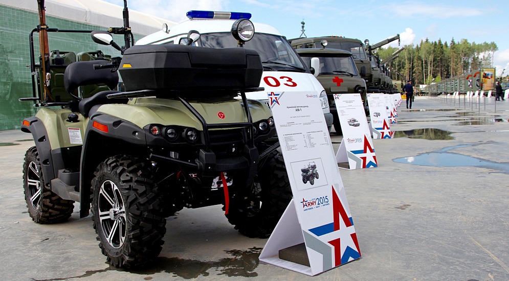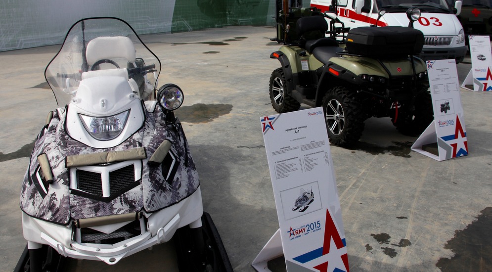 «Русская механика» принимает участие в подобной выставке военной продукции впервые, ведь раньше рыбинские «квадрики» и «снежики» предназначалась исключительно для мирных целей. На стенде «Русской механики» будут представлены оба новых образца российской военной техники: армейский снегоход и мотовездеход.