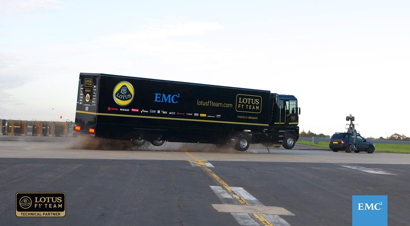 Команда Lotus, выступающая в Формуле-1, совместно с IT-компанией EMC устроили настоящее каскадерское шоу. Грузовик "Лотуса" после доработок сцепного устройства кабины и шасси выполнил прыжок с трамплина. Дальность прыжка составила 25 метров. И это — новый мировой рекорд.