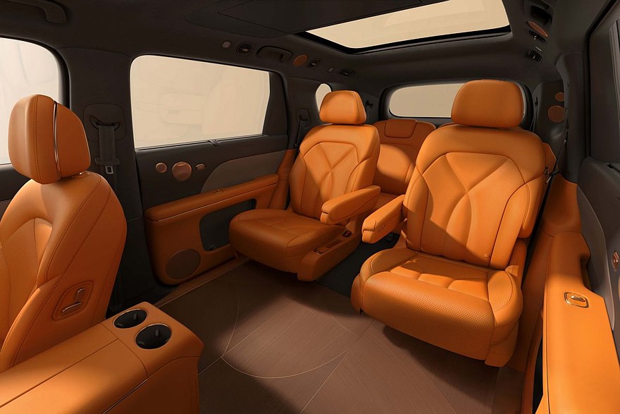 Если IM LS9 представлен исключительно с шестиместным салоном, то IM LS8 бывает как шести-, так и пятиместным. Кресла – разумеется, с подогревом, вентиляцией и массажером. В пятиместной версии у правого заднего сиденья есть откидная подставка для ног, плюс его спинку можно наклонить назад на 132 градуса. В арсенале модели также значится подогрев пола (такая опция есть и у LS9).