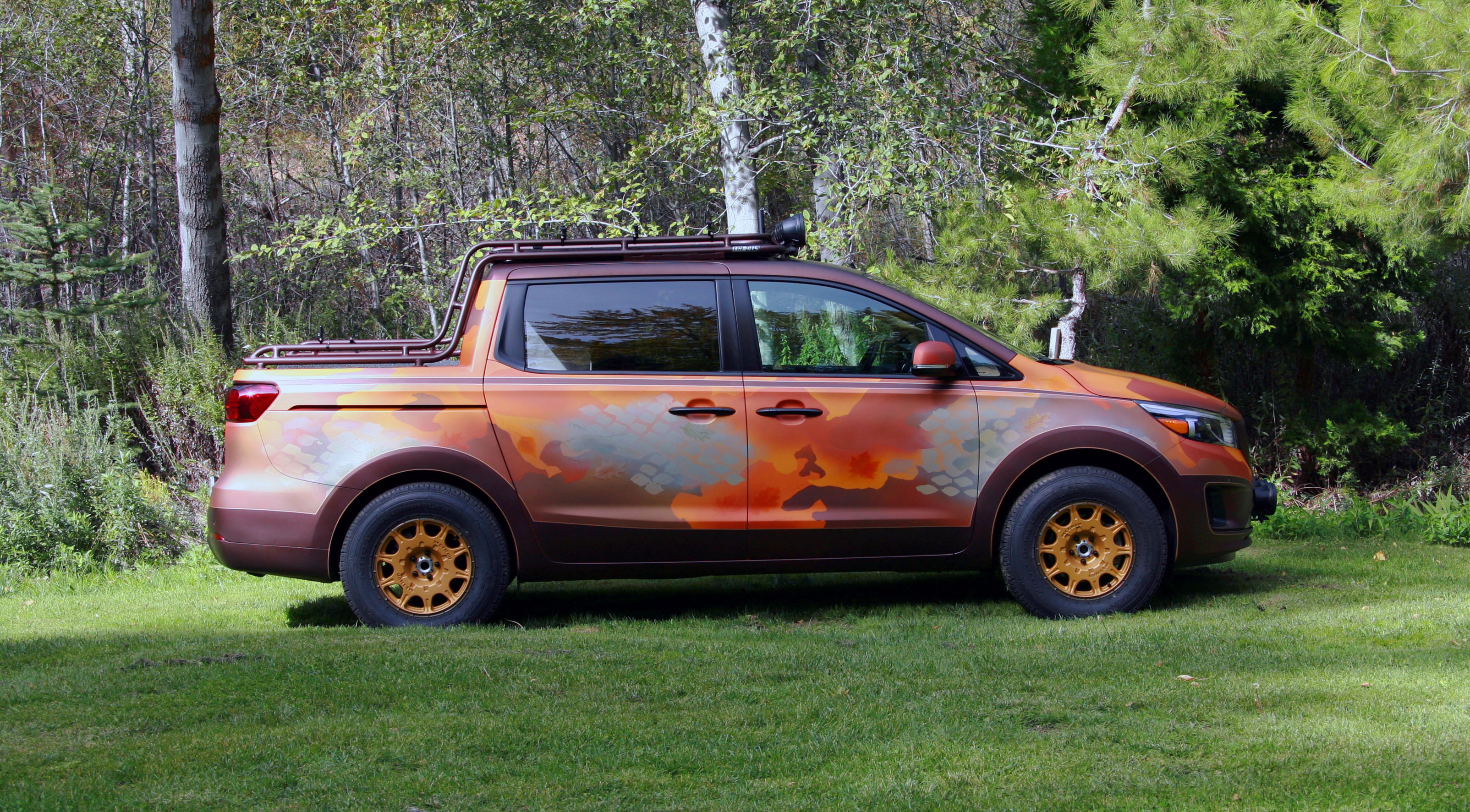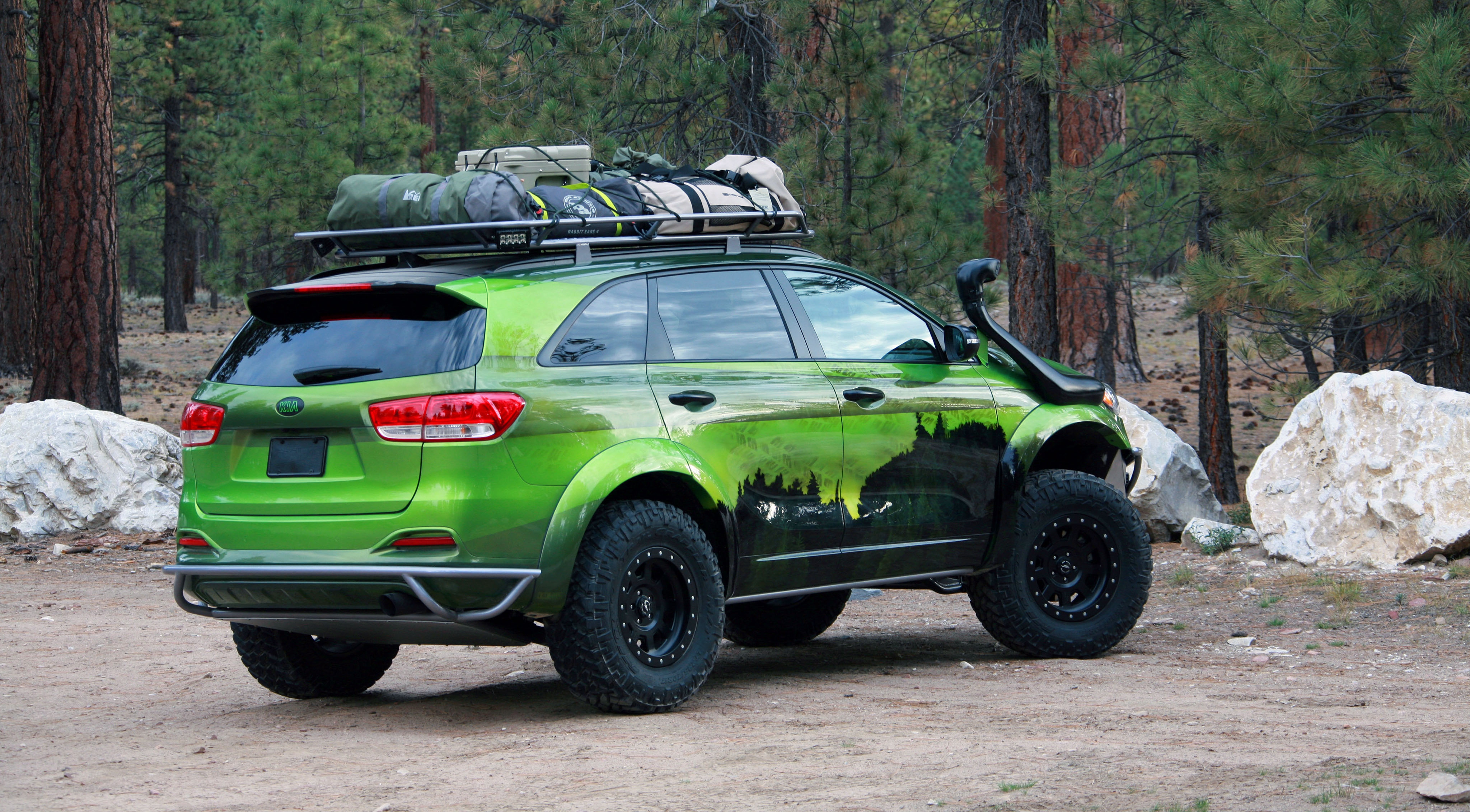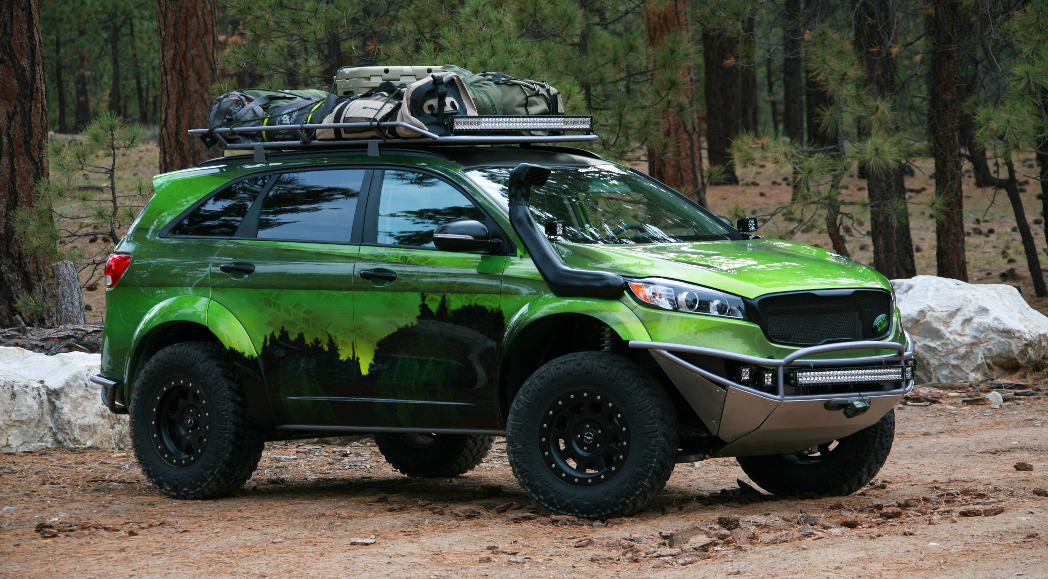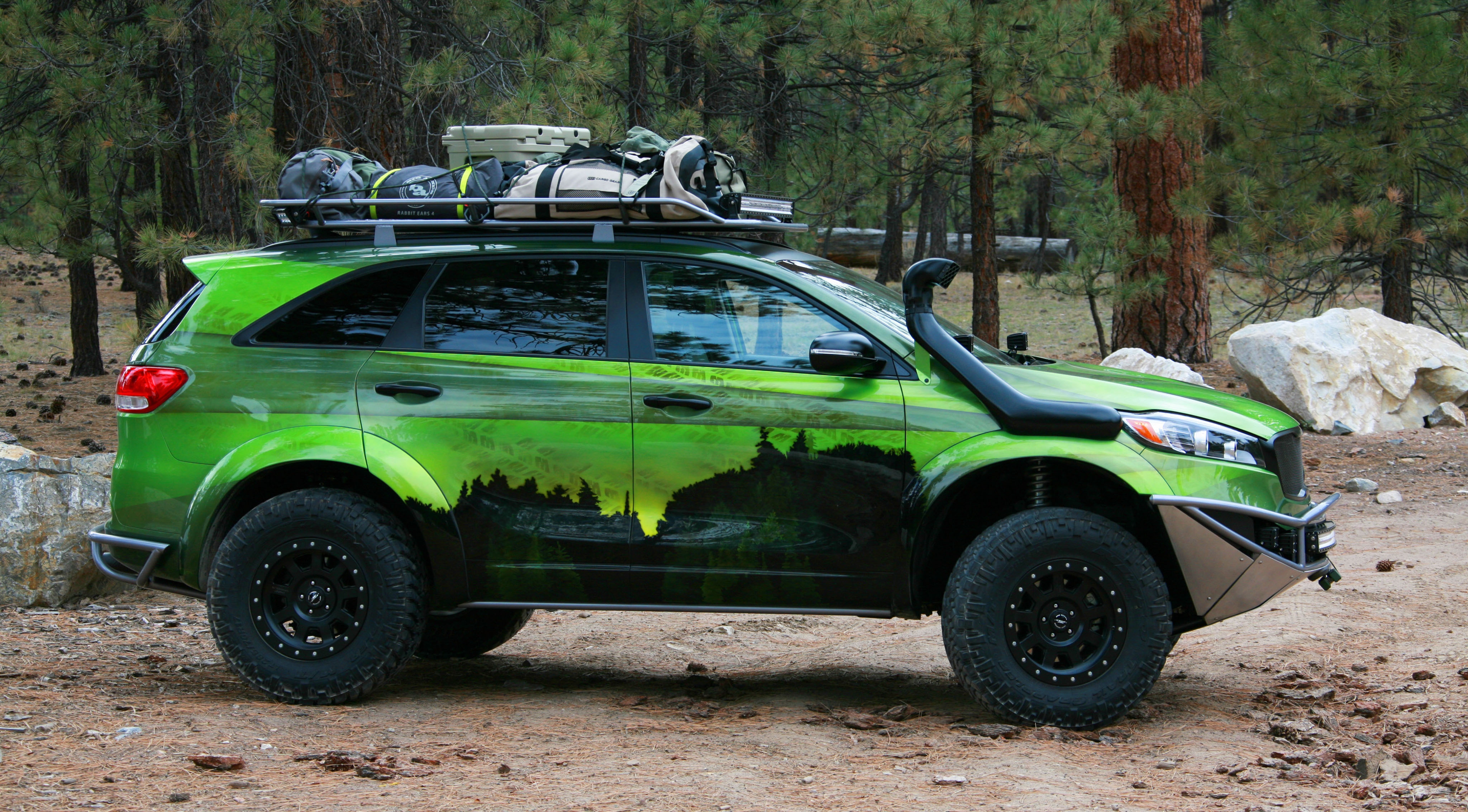 Готовый к серьезным внедорожным приключениям, PacWest Adventure Sorento построен в сотрудничестве с ателье LGE-CTS Motorsports. Концепт отдает дань уважения лесным территориям Тихоокенского Северо-Запада. Внедорожник получил кастомный окрас кузова с эффектом "хамелеон", зубастые шины Nitto Trail Grappler M/T размером 285/70R17, металлическую защиту бамперов и порогов, а также двойную светодиодную "люстру" и шноркель для преодоления водных преград. Под капотом — стоковый мотор мощностью 290 л. с.