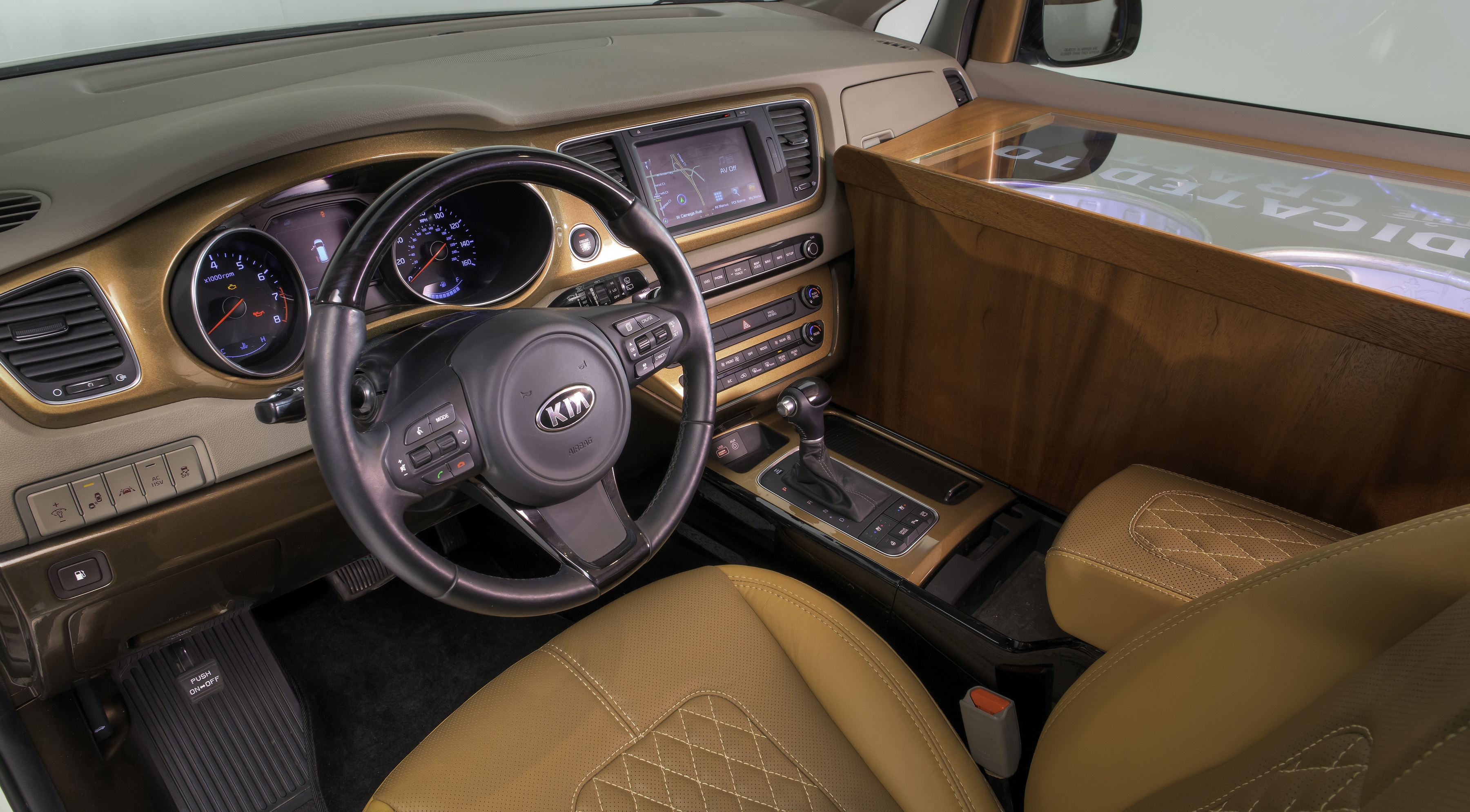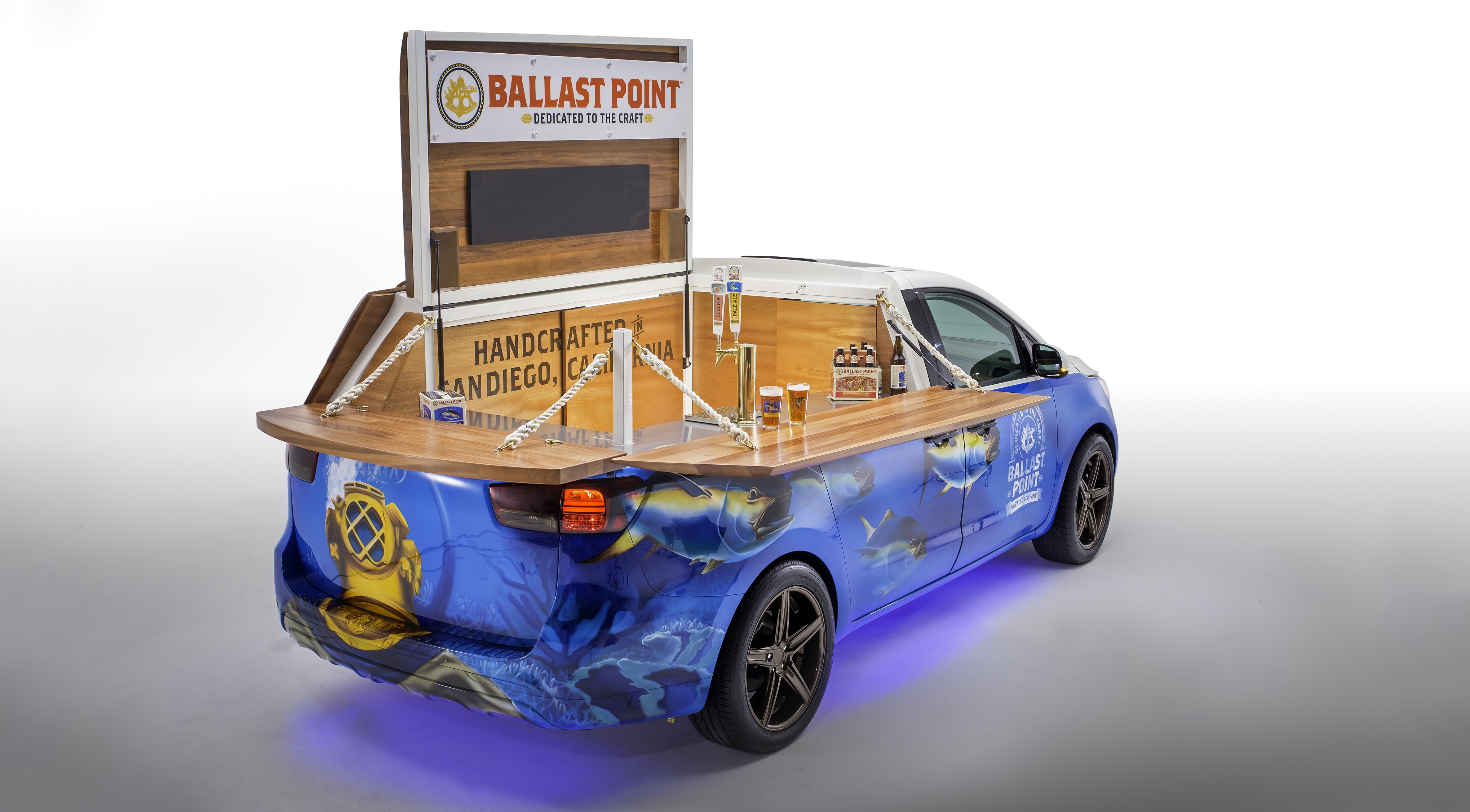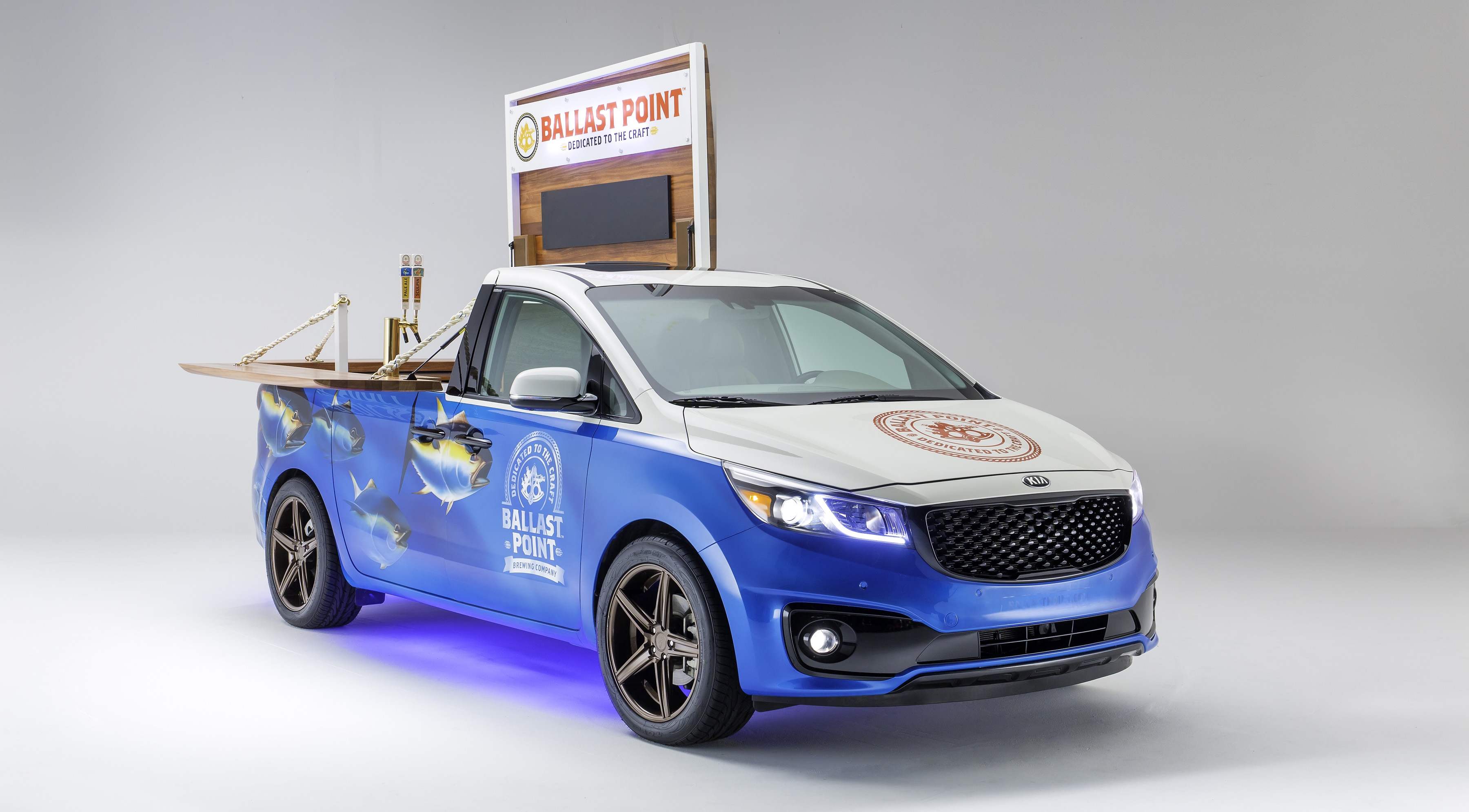Концепт Ballast Point Sedona построен в сотрудничестве с крафтовой пивоварней Ballast Point Brewing & Spirits из Калифорнии. Минивэн представляет собой передвижной бар с полноценной стойкой из массива красного дерева. Место пассажирских кресел заняли кеги с фирменным пивом и устройство для его охлаждения. Отметим, что концепт уже был показан компанией в прошлом году, но актуальности не потерял.