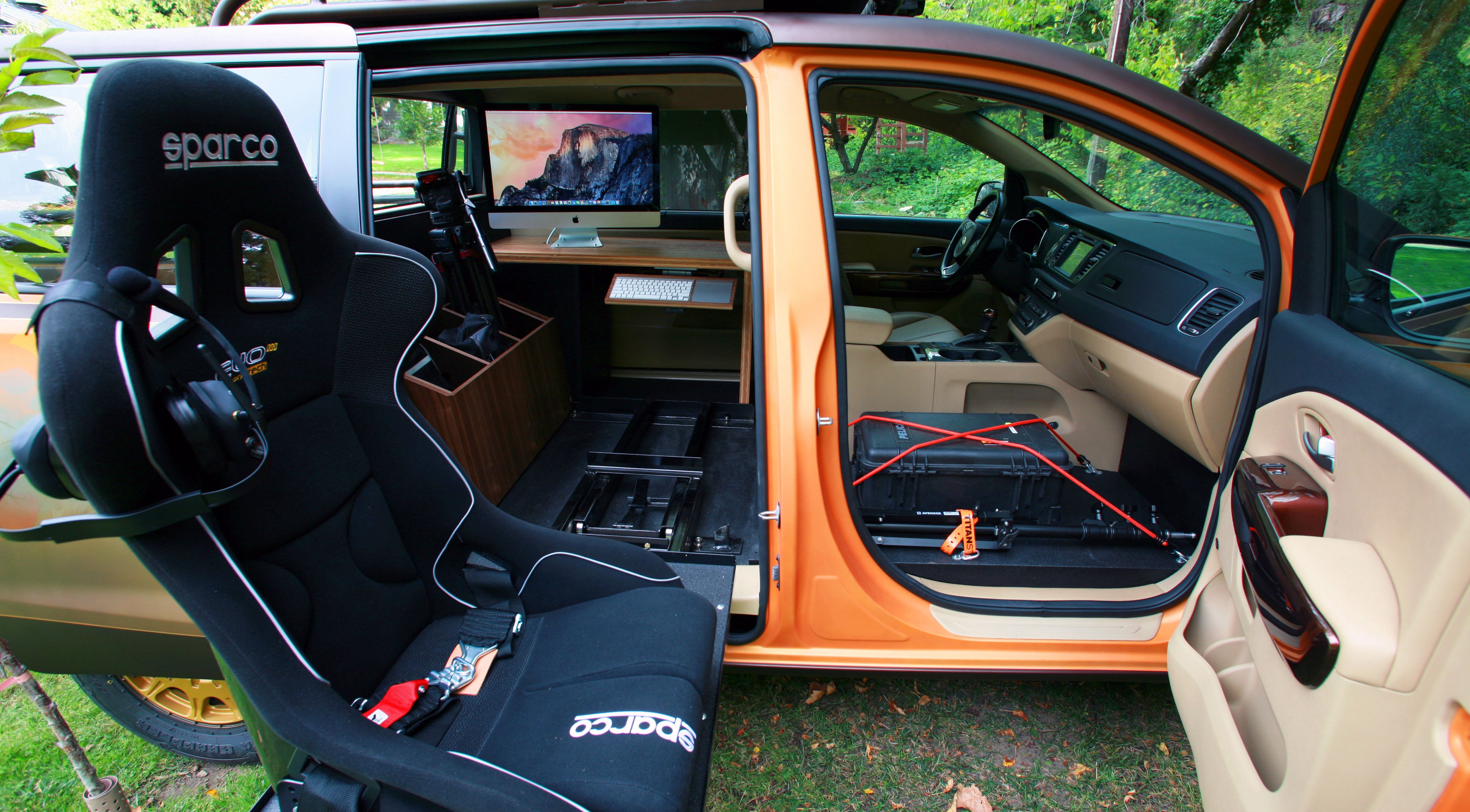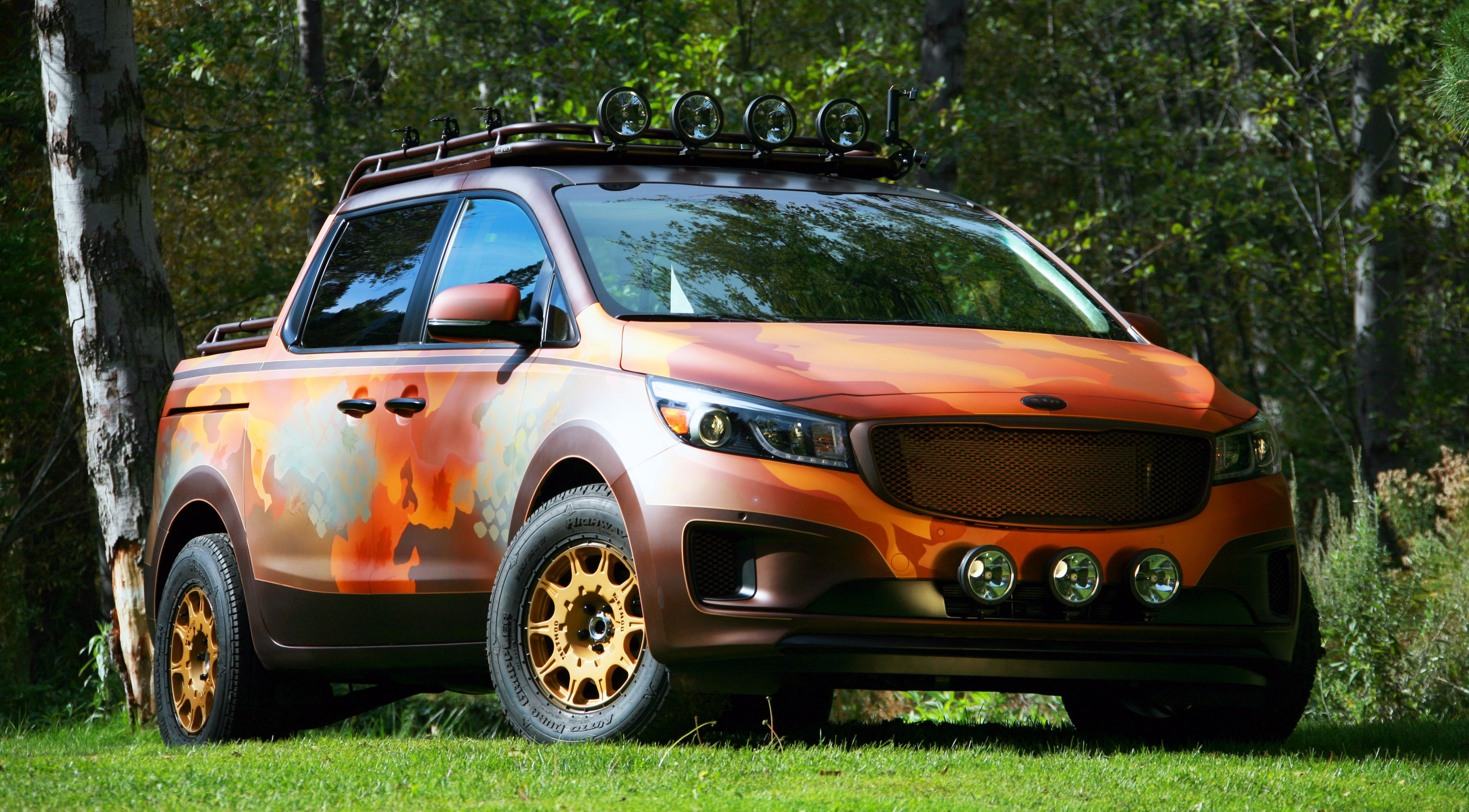 Концепт Photo Safari Sedona посвящен северо-восточной части США. Минивэн отлично подойдет тем, кто не мыслит приключений на природе без фотоаппарата. Специалисты из LGE-CTS Motorsports учли множество нюансов. Заднюю часть концепта превратили в смотровую площадку — с поручнями по периметру и многочисленными отсеками для хранения фотооборудования.
