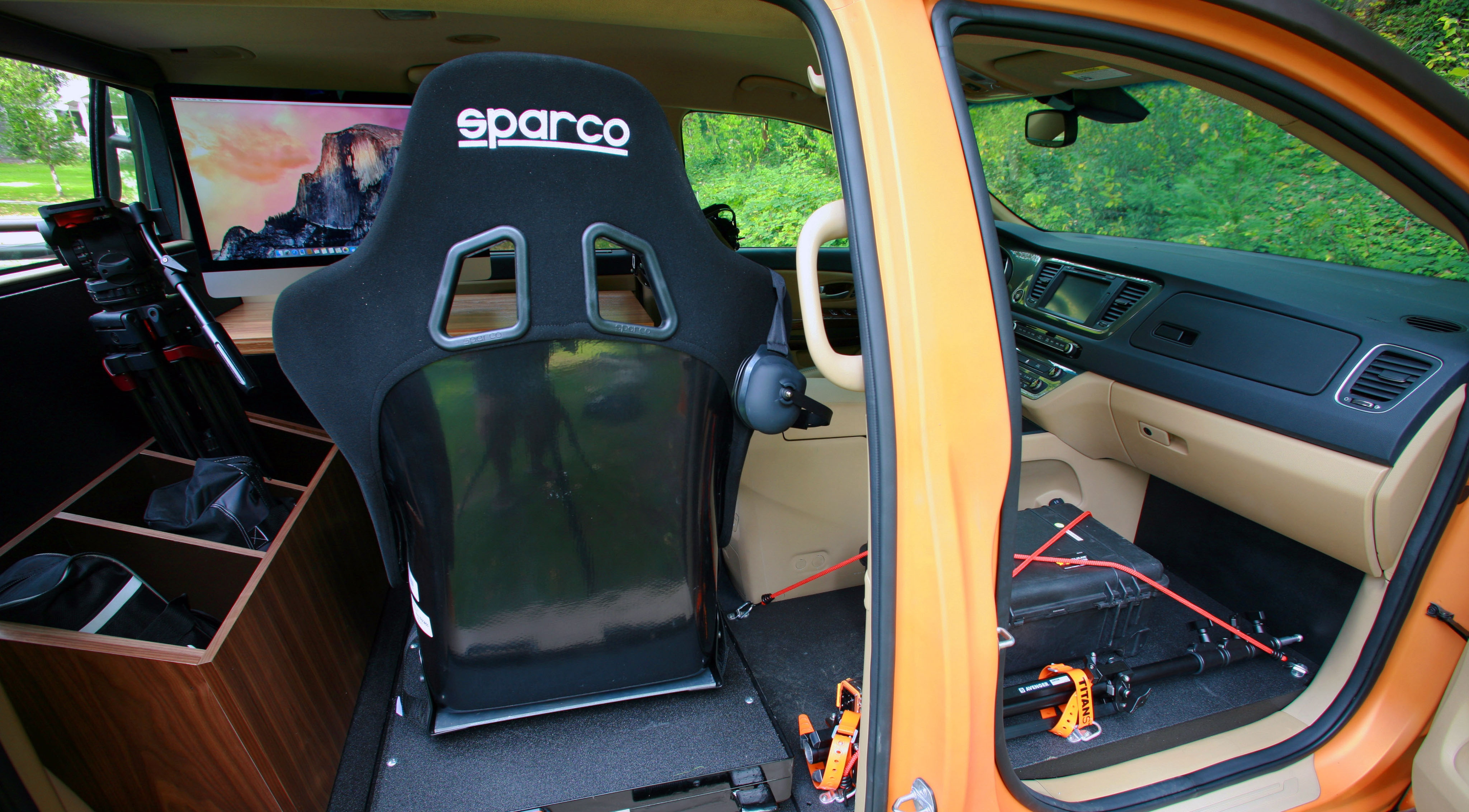 Там, где раньше находился второй ряд сидений, появилось рабочее место фотографа с 27-дюймовым компьютером iMac для обработки изображений. Внедорожный потенциал Photo Safari Sedona усилен пневматической подвеской, которая автоматически регулирует дорожный просвет; шинами Nitto Dura Grappler размерностью 265/65R17, а также мощной осветительной LED-системой, работающей во все четыре стороны от автомобиля.