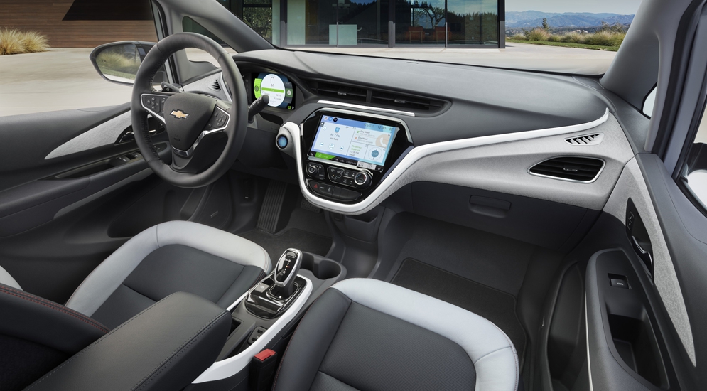 Не таким футуристичным, как у одноименного концепта, оказался и интерьер модели. Зато в арсенале электрокара имеются мультимедийная система MyLink с сенсорным экраном диагональю 10,2 дюйма, система беспроводной зарядки для смартфонов, камера заднего вида, выводящая изображение на салонное зеркало, система OnStar 4G LTE, позволяющая автомобилю раздавать Wi-Fi, «умный» навигатор, который учитывает погоду, манеру вождения и тип местности для оптимального расхода зарядки.