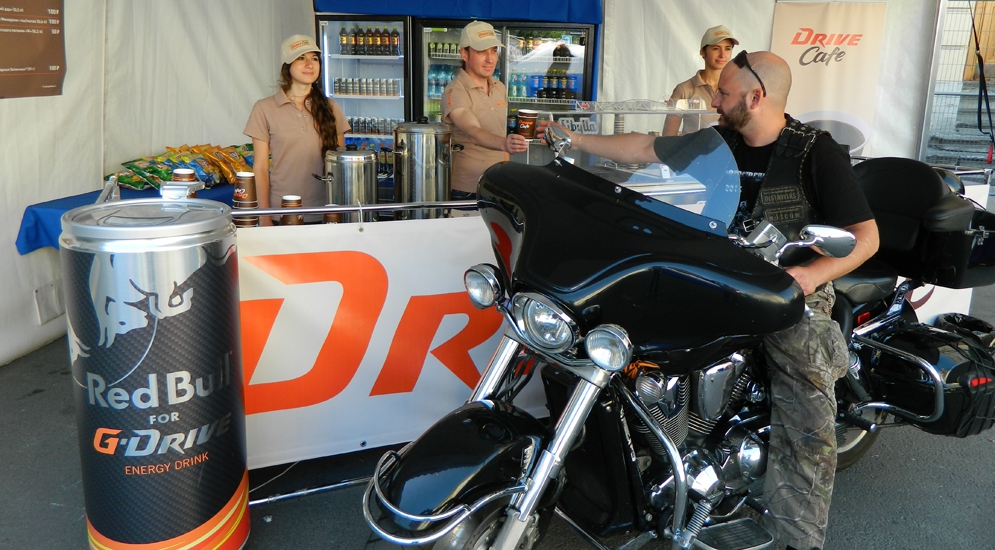 В течение четырёх дней праздника все желающие получили возможность не только оценить легендарную мототехнику, представленную в рамках феста, но и посетить выполненный в виде автозаправочной станции стенд сети АЗС "Газпромнефть". Павильоны Drive Café обеспечивали всех гостей мероприятия, желающих поучаствовать в дегустации, эксклюзивным энергетическим напитком Red Bull for G-Drive, а также иной продукцией фирменных кафе сети АЗС, в том числе горячими блюдами и различными снеками.
