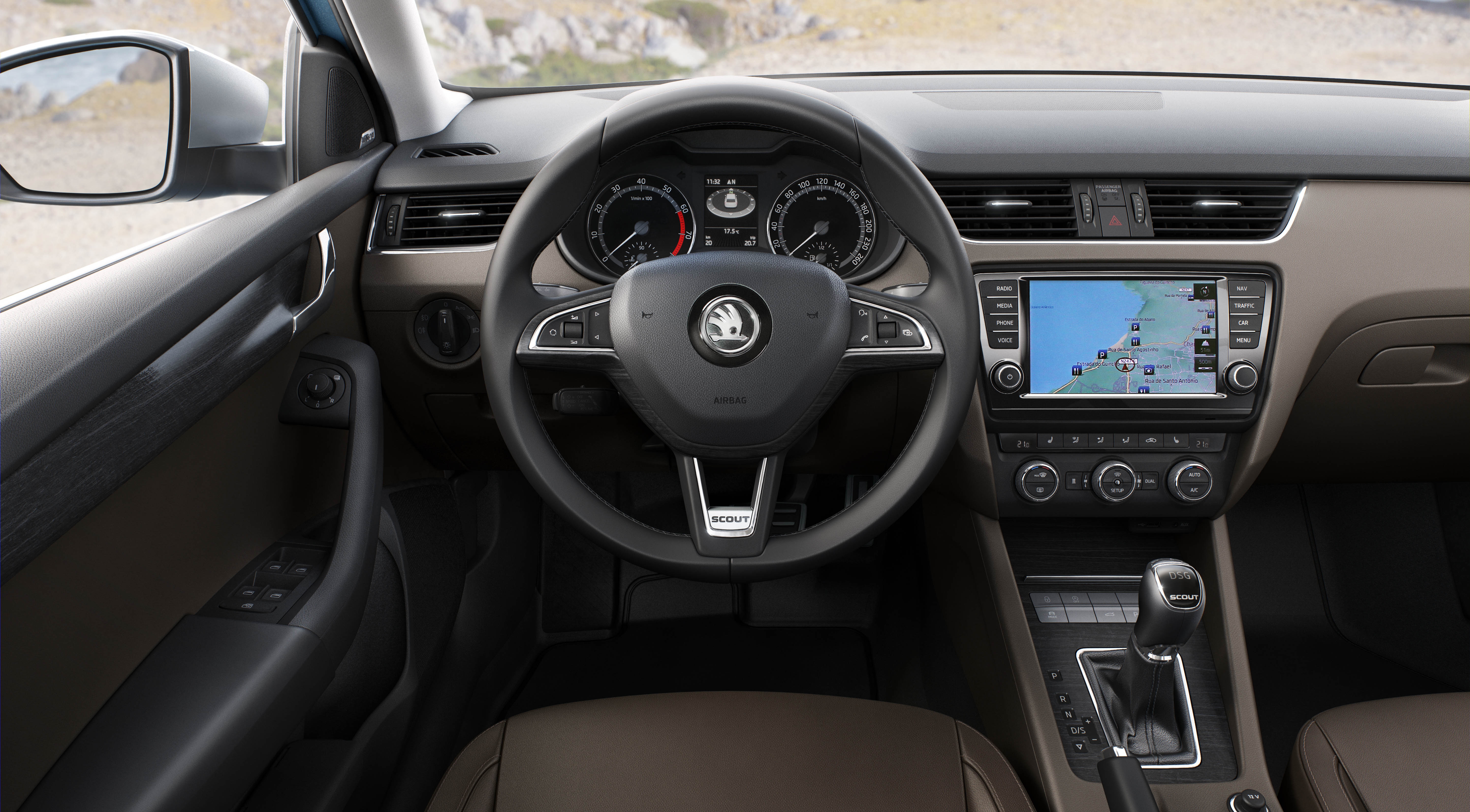 В качестве опций для нового Scoda Octavia Scout доступны: биксеноновые фары; электропривод крышки багажника; ассистент парковки; камера заднего вида; подогрев заднего ряда сидений, литые диски Nivalis 7J x 17 цвета "антрацит".