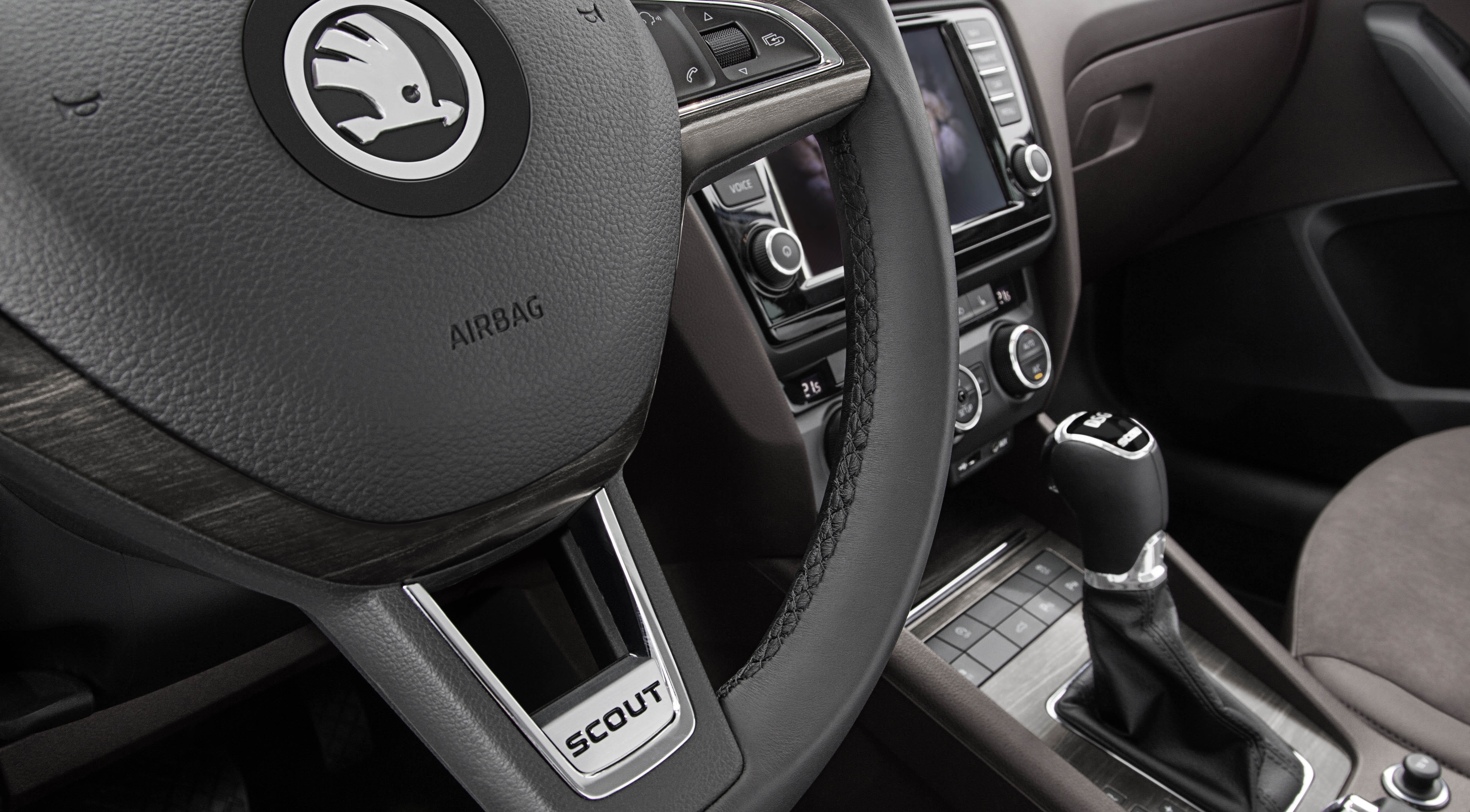 Skoda Octavia Scout в стандартной комплектации оснащается: передними противотуманными фарами; двухзонным климат-контролем; электронной системой курсовой устойчивости; ассистентом подъёма в гору; системой полного привода с муфтой Haldex пятого поколения.